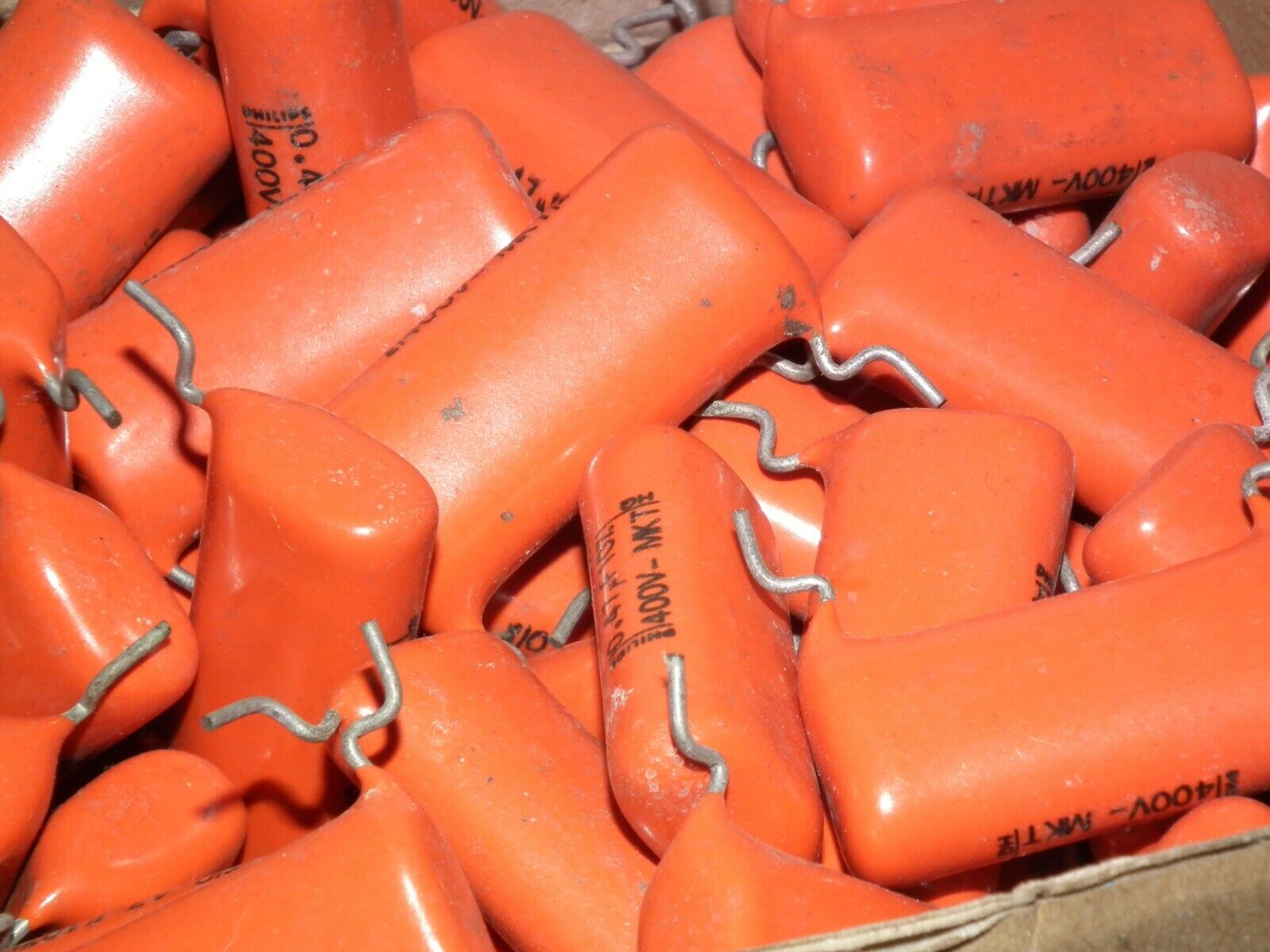 Four (4 pcs) NOS vintage MKT metalized polyester film capacitors (Philips Vishay MKT), rare and great sounding, ideal for tube amplifiers, made in Belgium by Vishay, from NOS military stock, premium grade, perfect replacement and upgrade for guitar amplifiers and Klangfilm hi end tube audio projects.