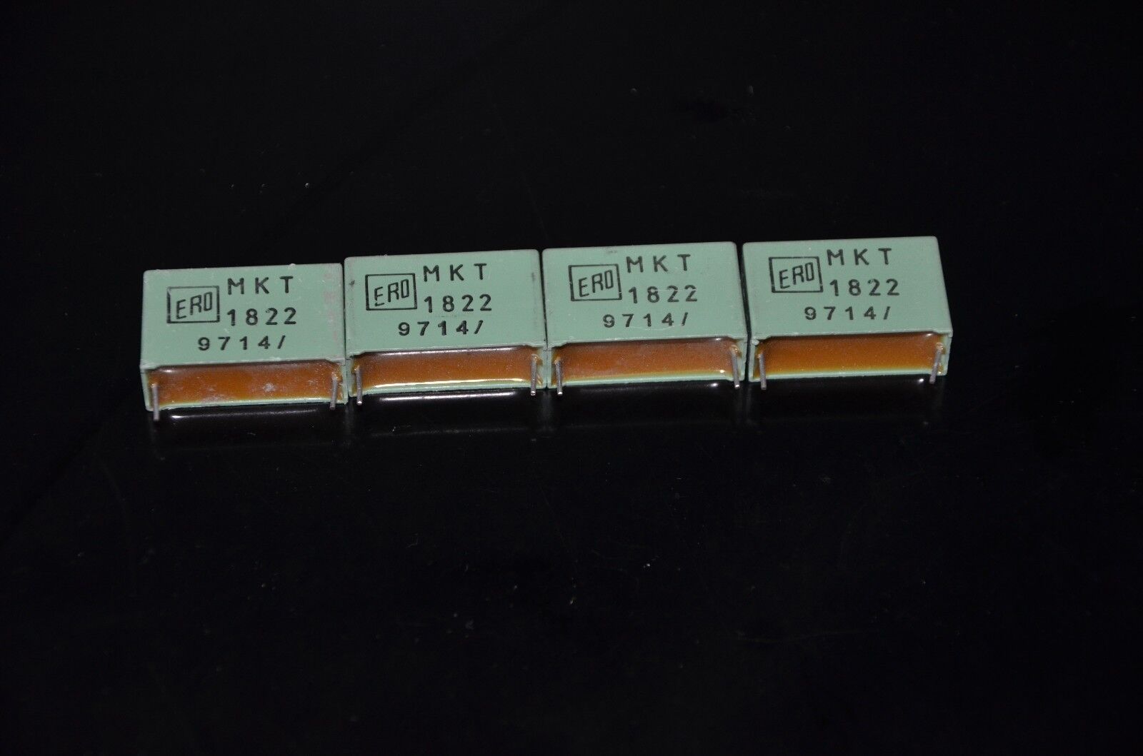 Four (4) NOS vintage audio capacitors, rare and great sounding, made in 1997, by Roederstein Vishay ROE, perfect replacement and upgrade for hi end amplifiers and preamp