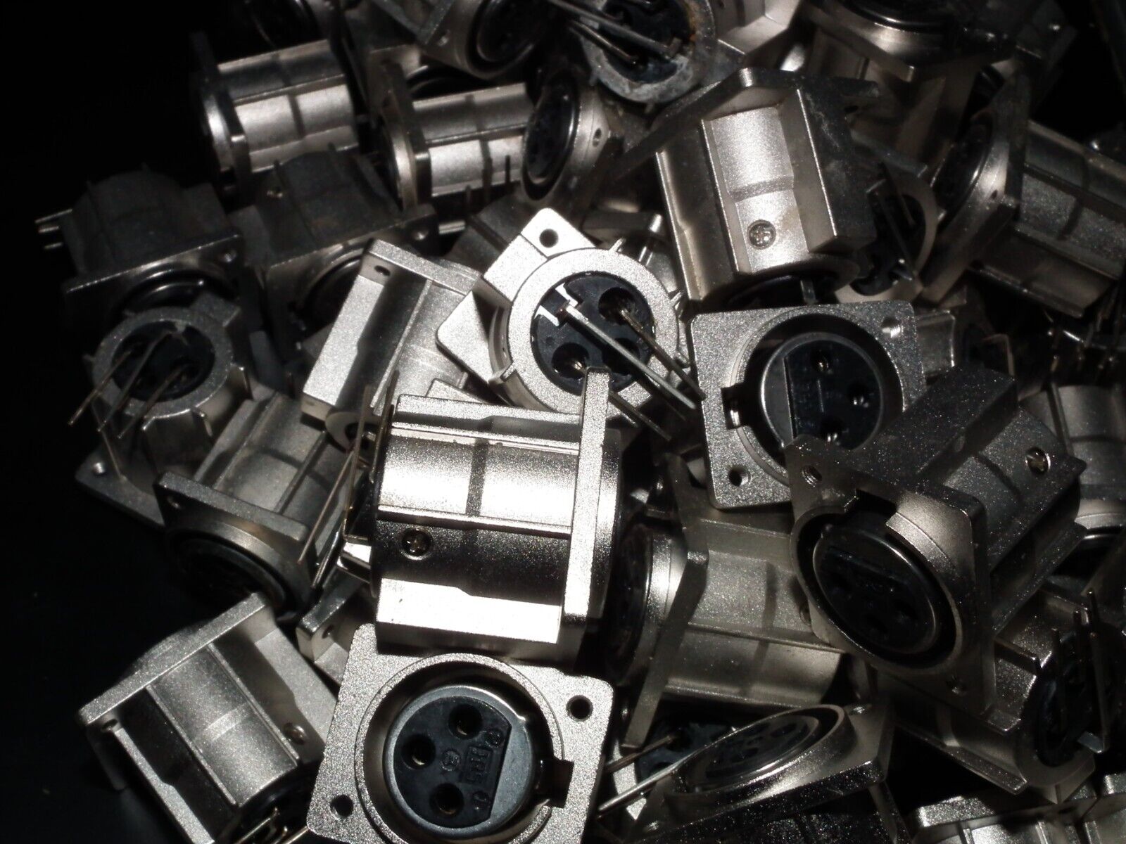 NEW HRS Hirose 3 Pin XLR Female Panel Mount Connector. This Connector has a Nickel Plated Zinc Alloy Metal Housing with a Matte Finish and Silver Plated Copper Alloy Contacts. This is a Good Quality Connector Made by HRS Hirose in Japan, not a lesser quality import.