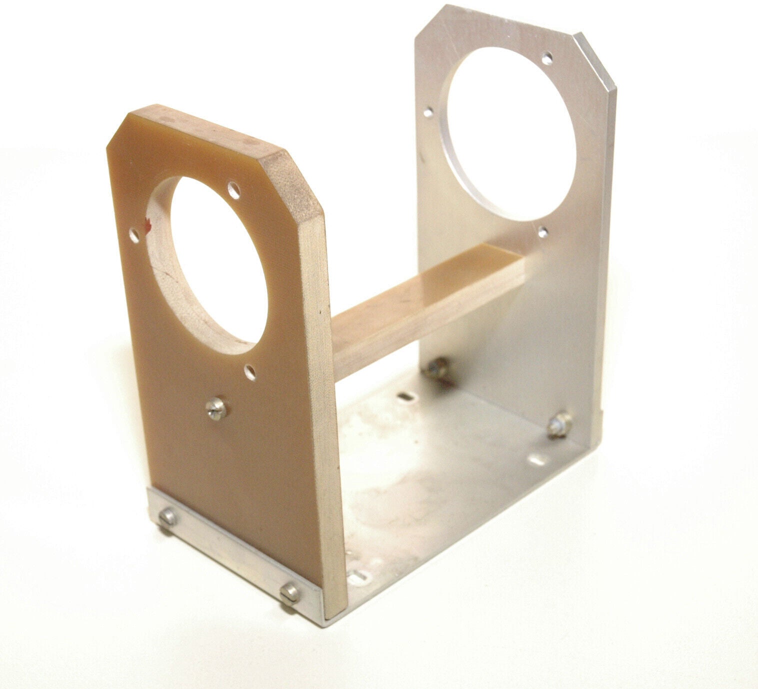 One (1 pcs) vintage mount hardware for the Jennings UCSL-1000 variable capacitor. Made of high quality vitroplast and aluminum. Original Jennings flanges are required to mount the vacuum capacitor in this holder. Removed from a military antenna box that was unused, so it looks like new. Truly a very elegant and quality solution for mounting the vacuum capacitor. It is shipped disassembled, it takes two minutes to assemble. Screws are included in the package.
