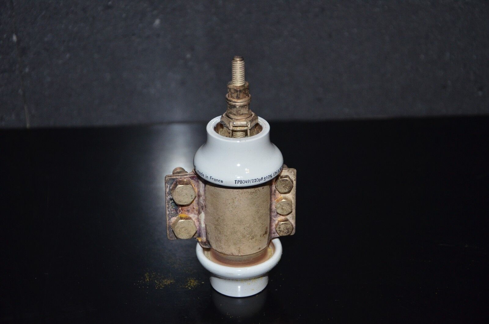 One (1) NOS vintage capacitor, rare and hi quality, 220pF 8.5KV, ideal for professional broadcast power RF tube amplifiers and QRO ham radio transmitters, made in France, by LCC (Doorknob hi voltage capacitor)