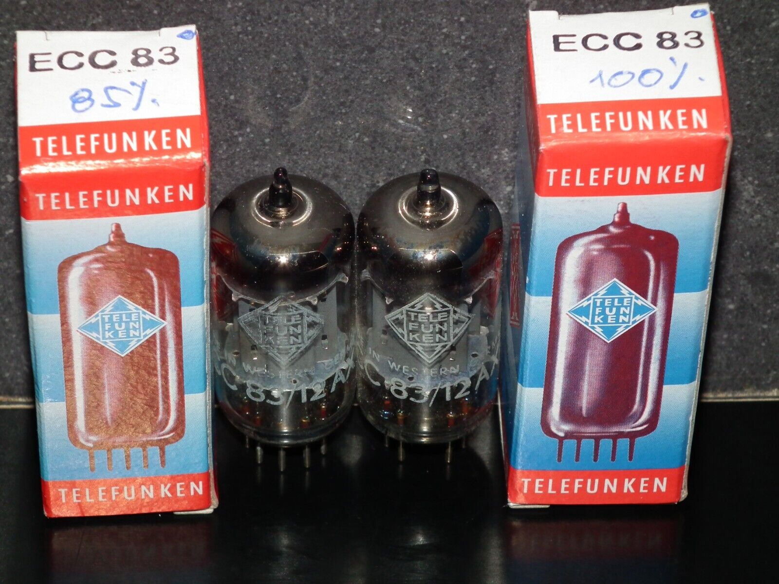 Matched Pair 12AX7 Telefunken ECC83 Tested 85/100% Smooth Anodes DB Berlin Codes