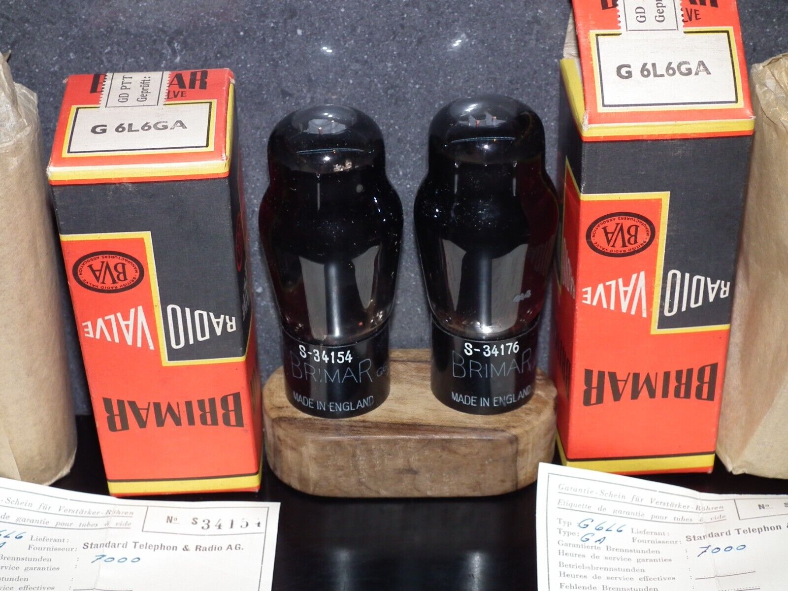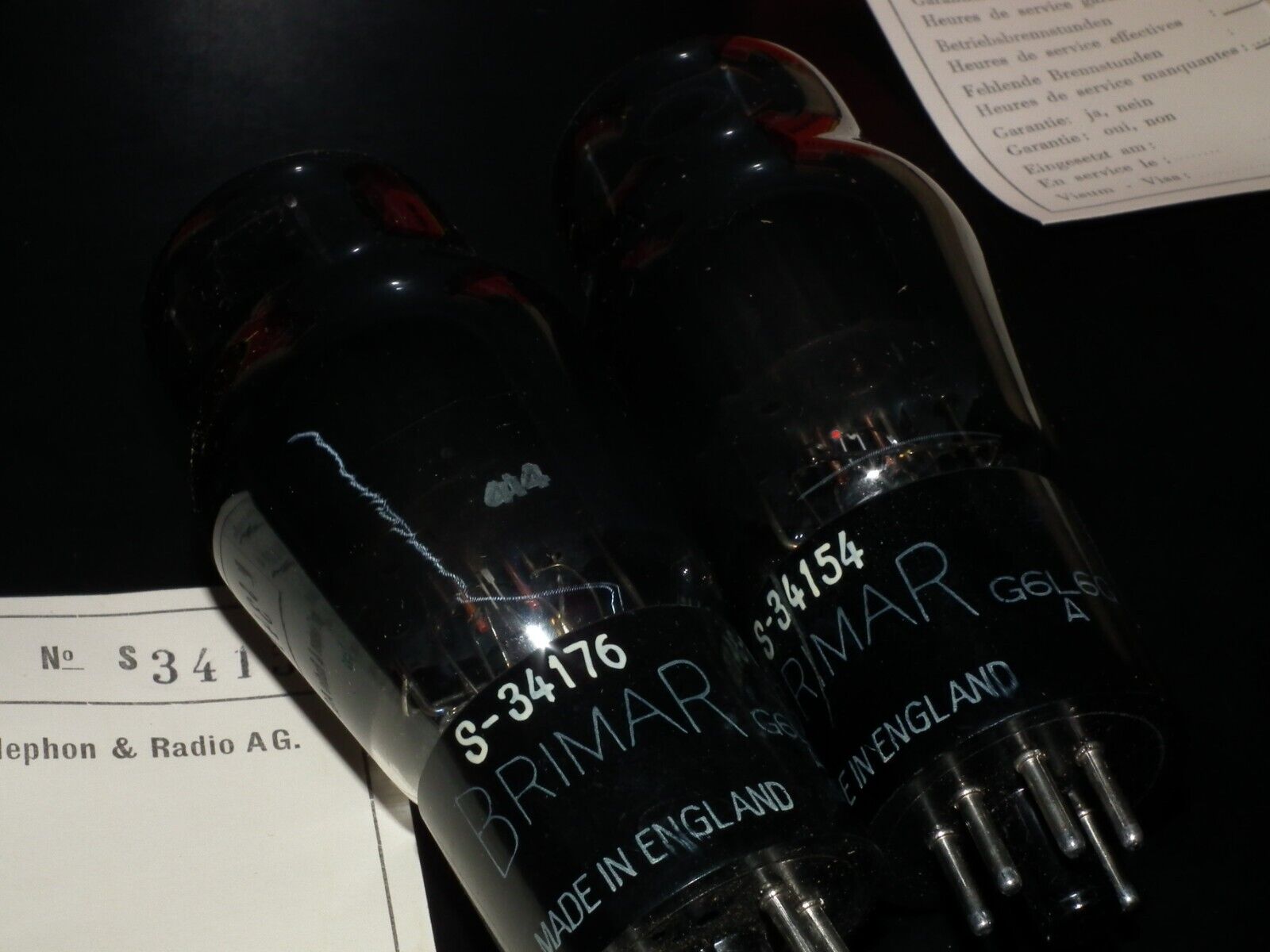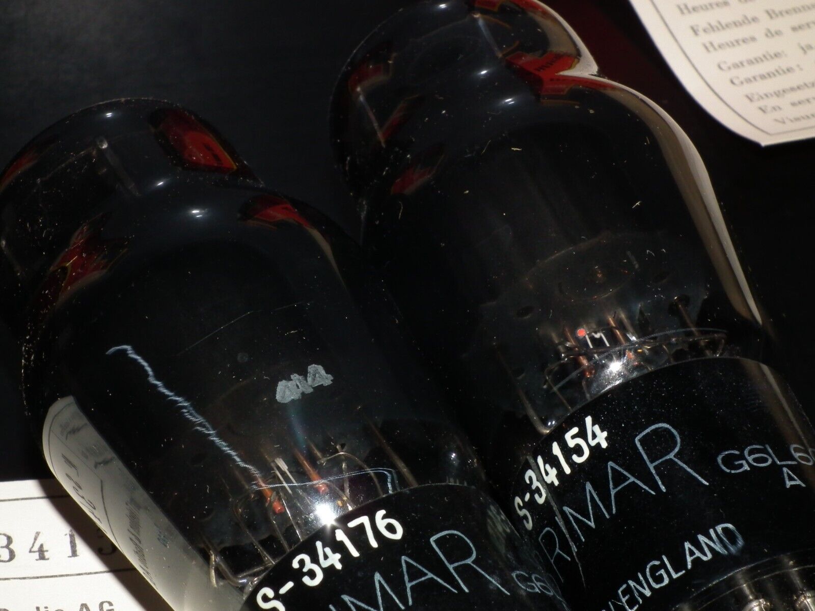 Matched pair 6L6GA BRIMAR UK Black coated glass, close serial numbers, FENDER