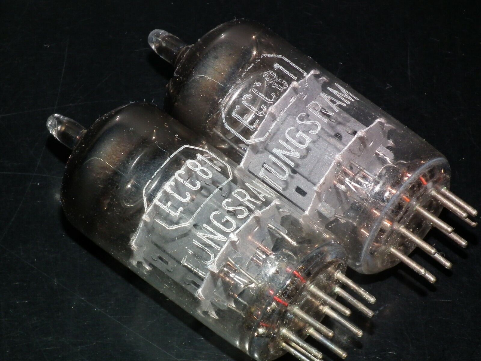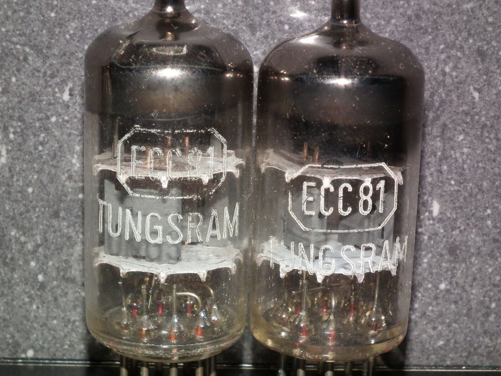 For sale is one matched pair ( 2 tubes ) of extremely rare geniuine Siemens rebranded Tungsram ECC81 12AT7, Made in Munich by Siemens and Halske, ribbed plates, single plate hole. Two pairs in stock, Tk2 and Tk3 Siemens&Halske codes. Made in early 60s.