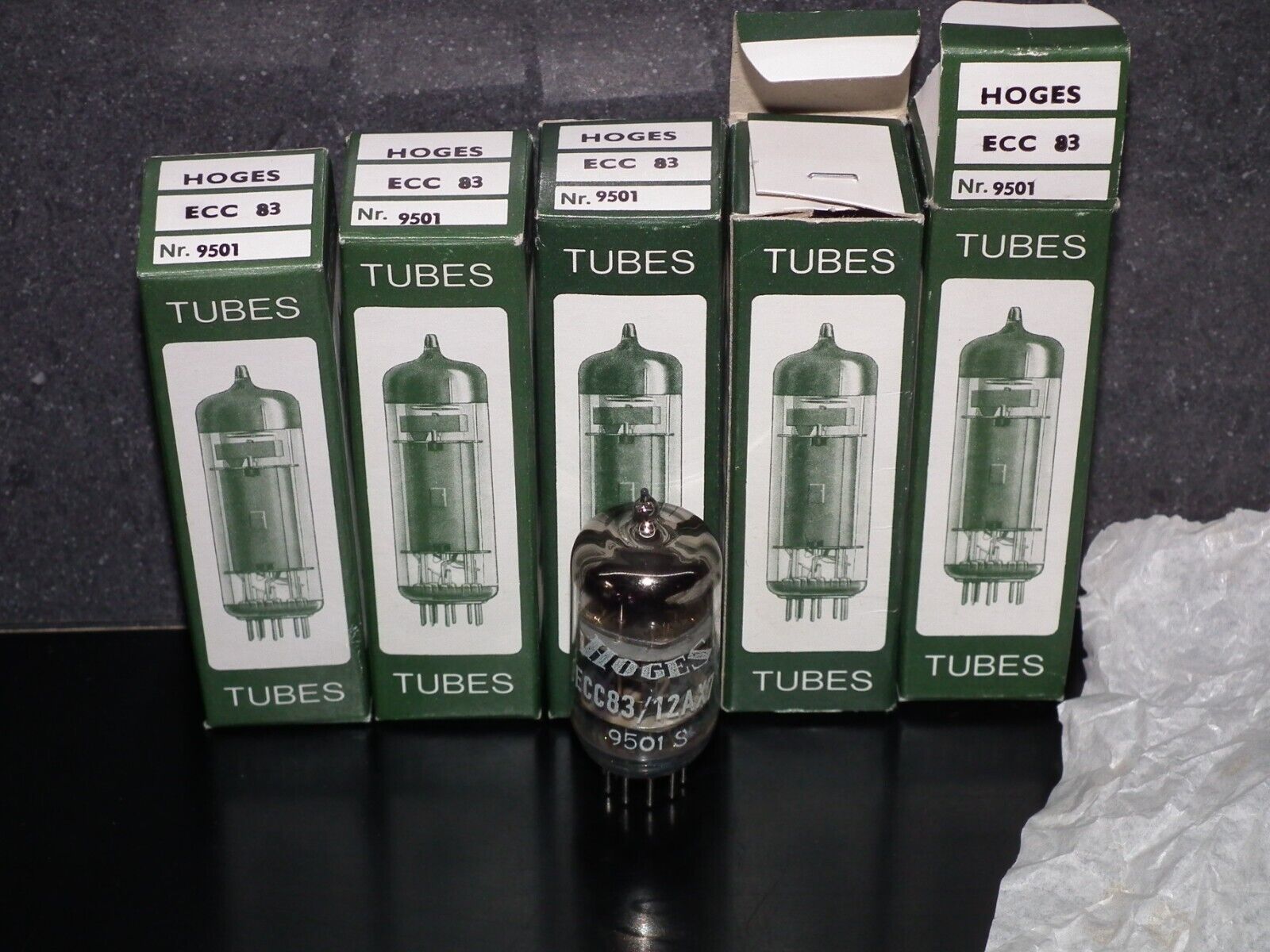Auction is for two (2) fully tested NOS tubes, platinum matched pair of rare ECC83 12AX7 Hoges.I collect tubes and tube gear for more then 35 years and I start to sell recently, please be sure to check my other items and visit my store for more rare NOS tubes and parts.