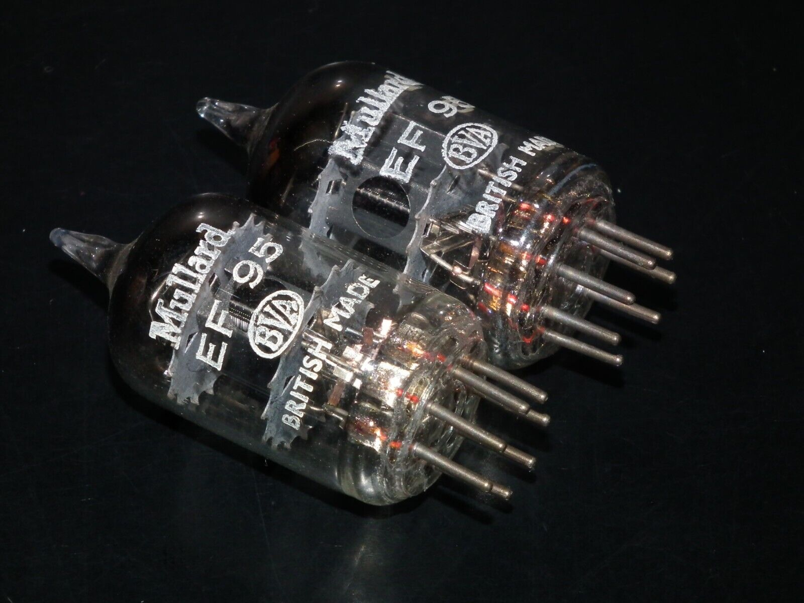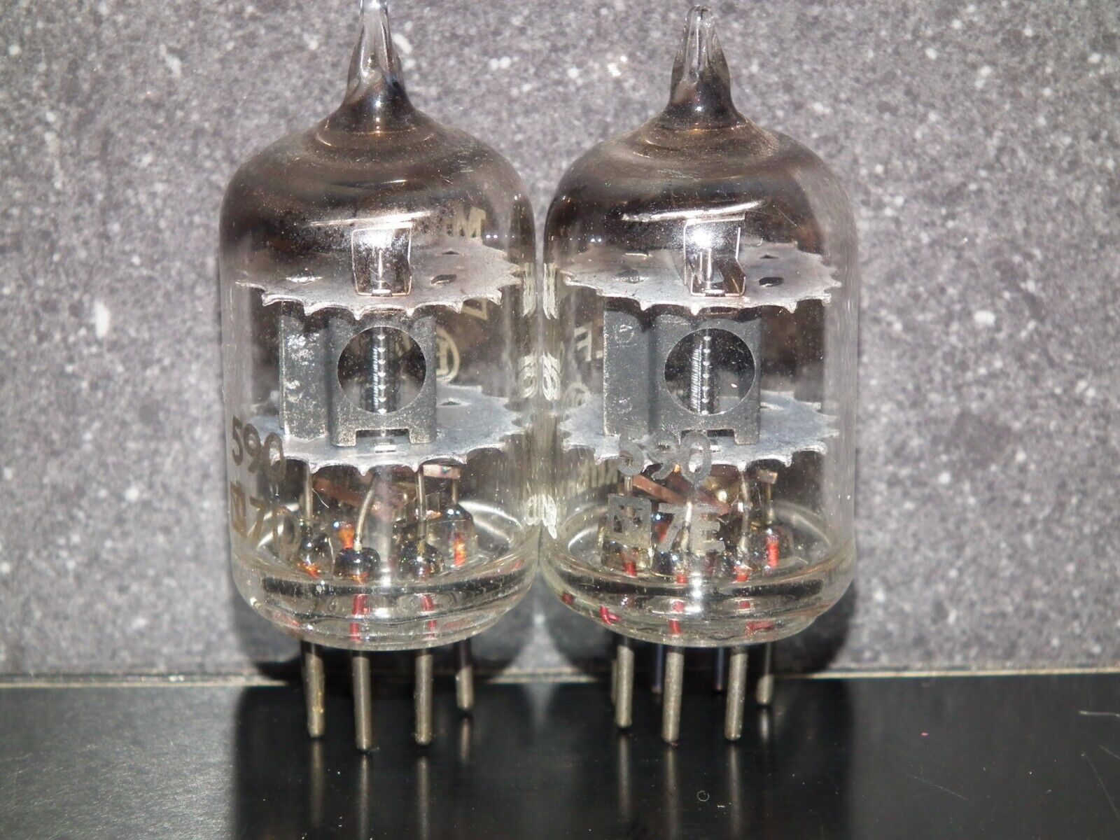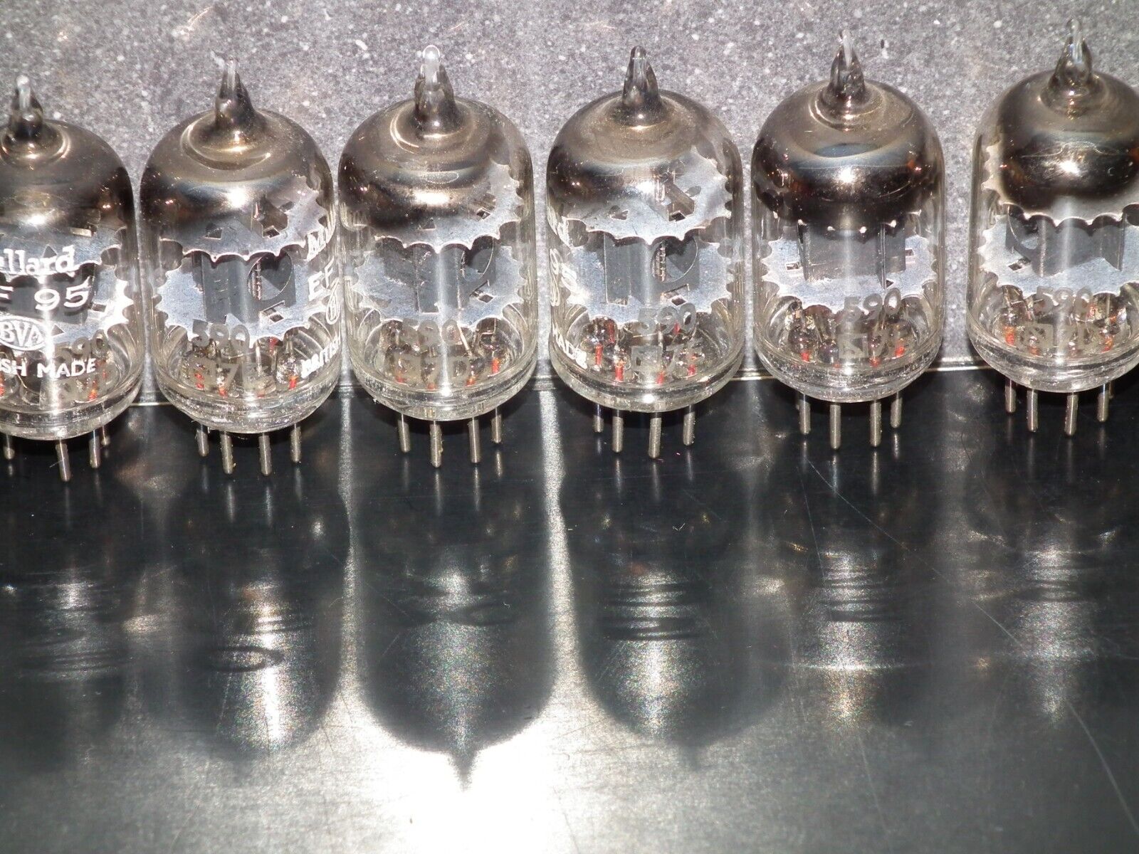 Two tubes (platinum matched pair within 5% !!!) of rare EF95 5654 6AK5W Mullard