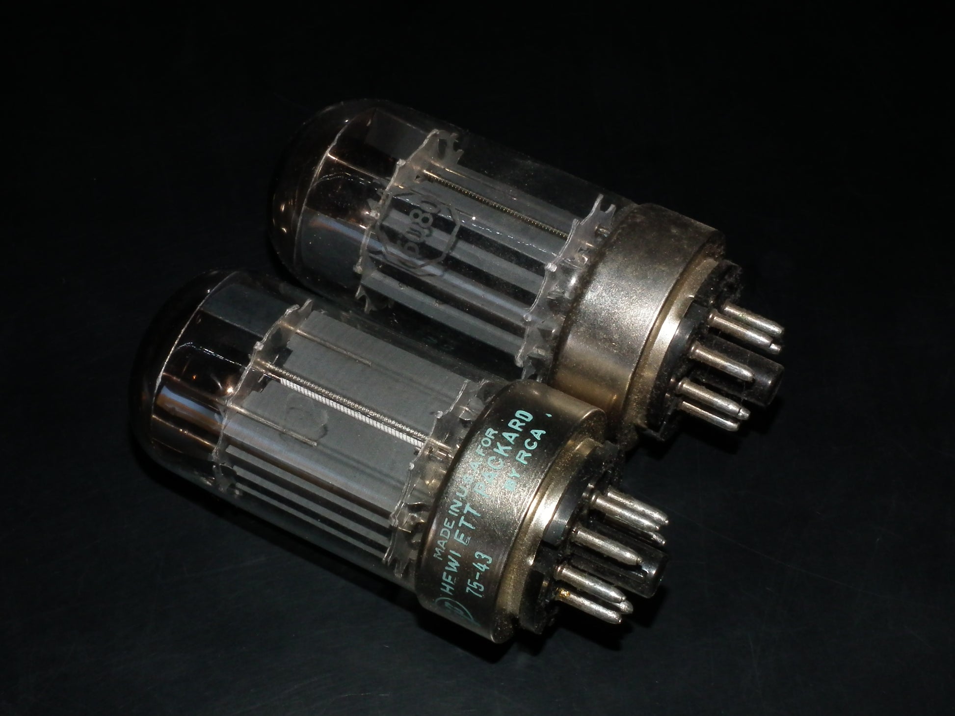 One matched pair (2 tubes) 6080 / 6AS7 / 5998 made by RCA for HP, triple mica, double power triodes, used, tested NOS.