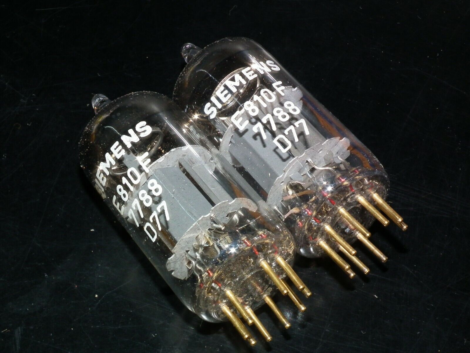 One matched pair (2 tubes) genuine E810F / 7788 Siemens, made in 60s. Tested for noise and microphonics.