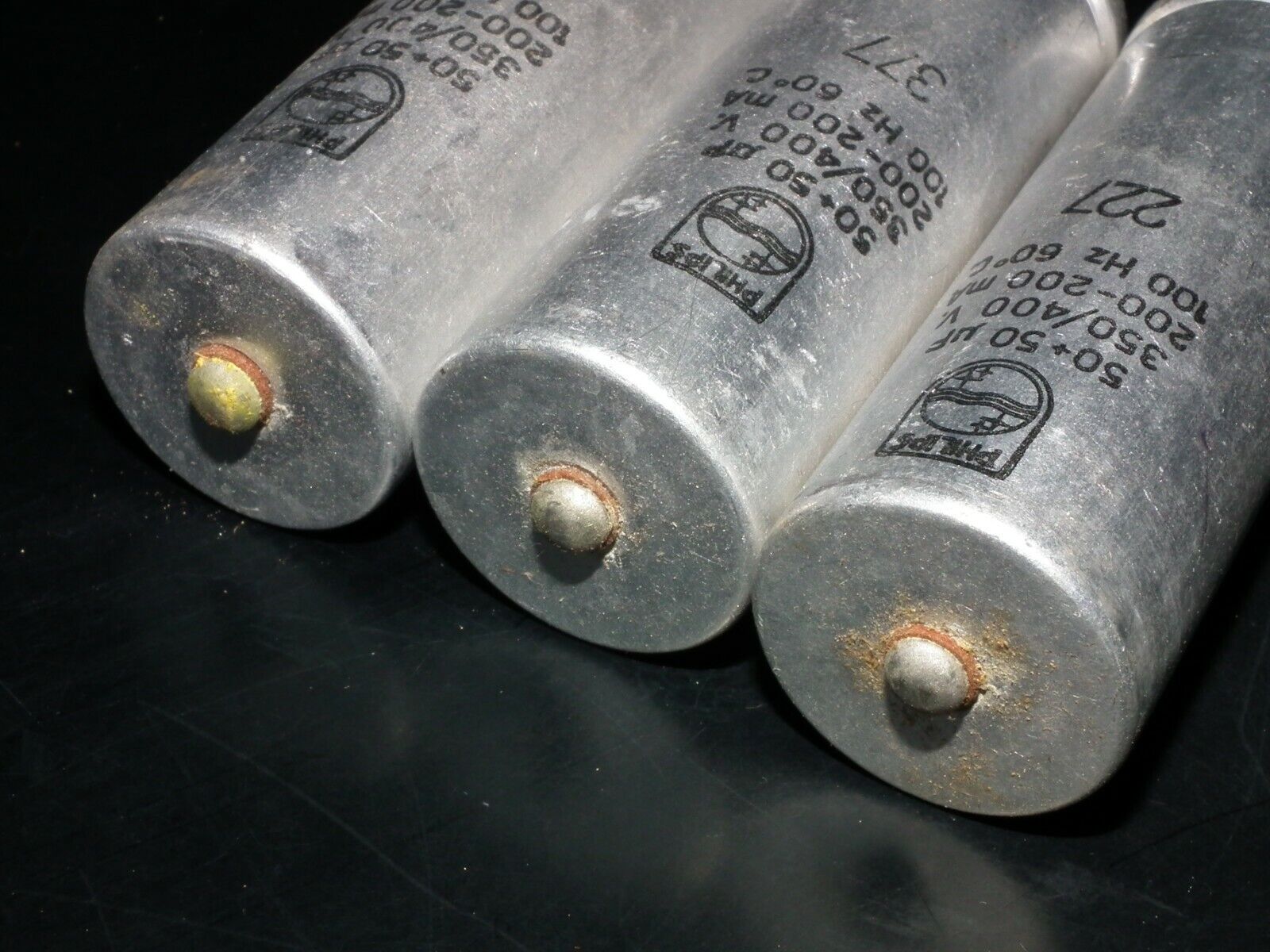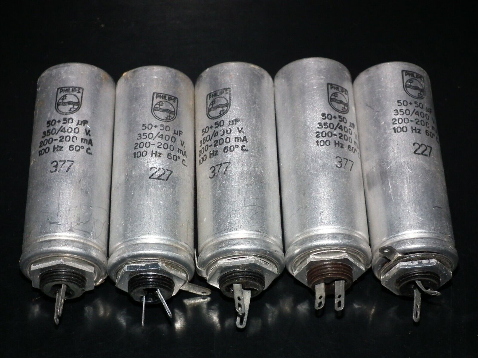 NOS vintage Philips electrolytic can capacitor 50 + 50 mfd 400V made back in 60s