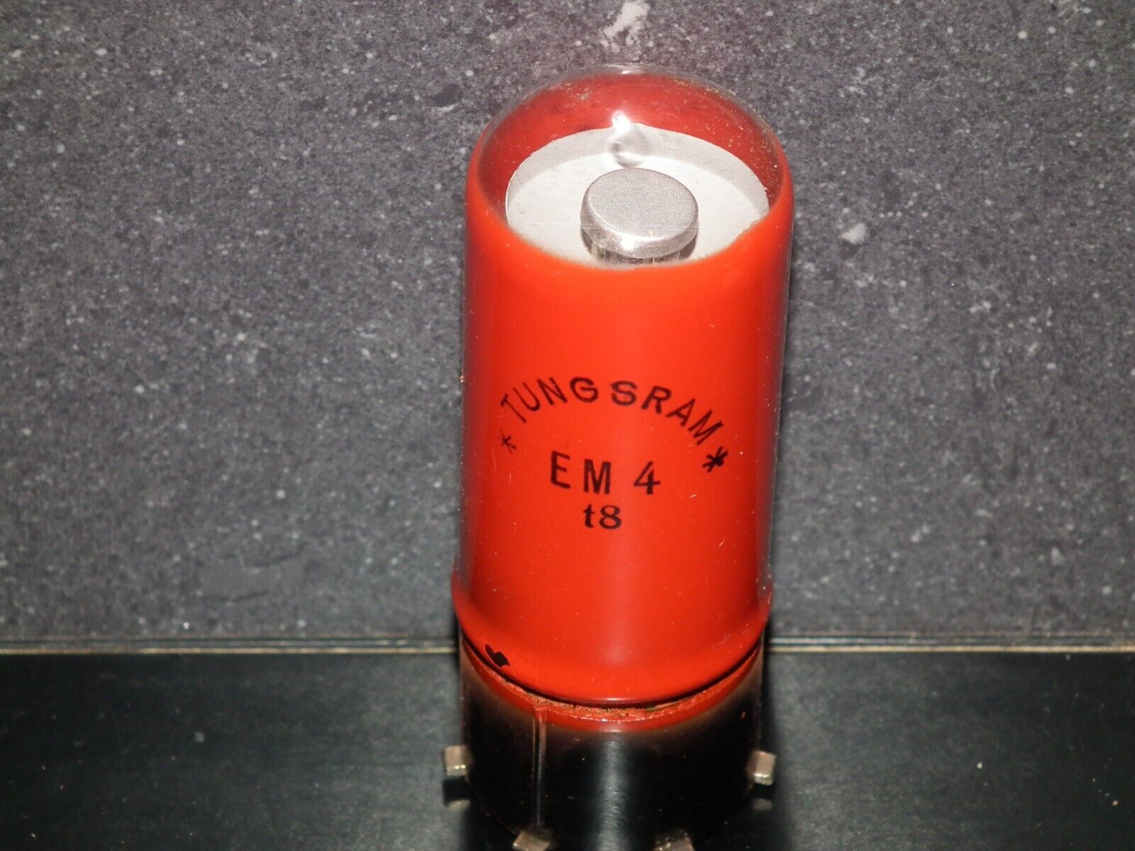 One (1 pcs) Tungsram EM4 tuning eye tube old type NOS NIB Sealed Box Red Coating