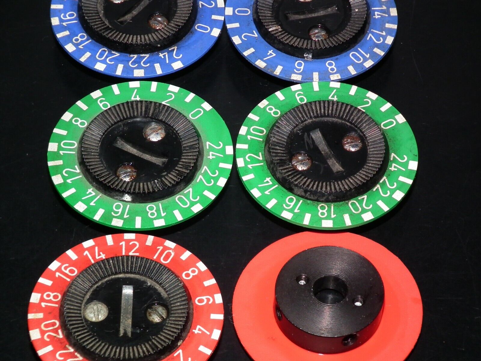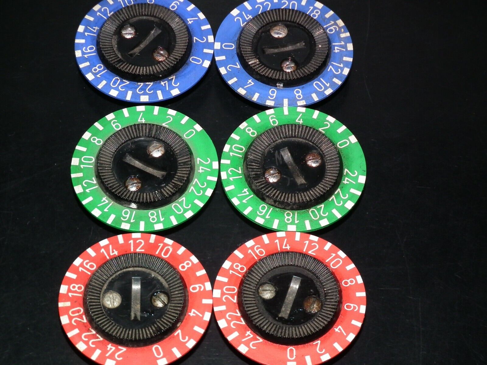One (1 pcs) Vintage KNOB for 6mm shaft 0-24 Red Green Blue