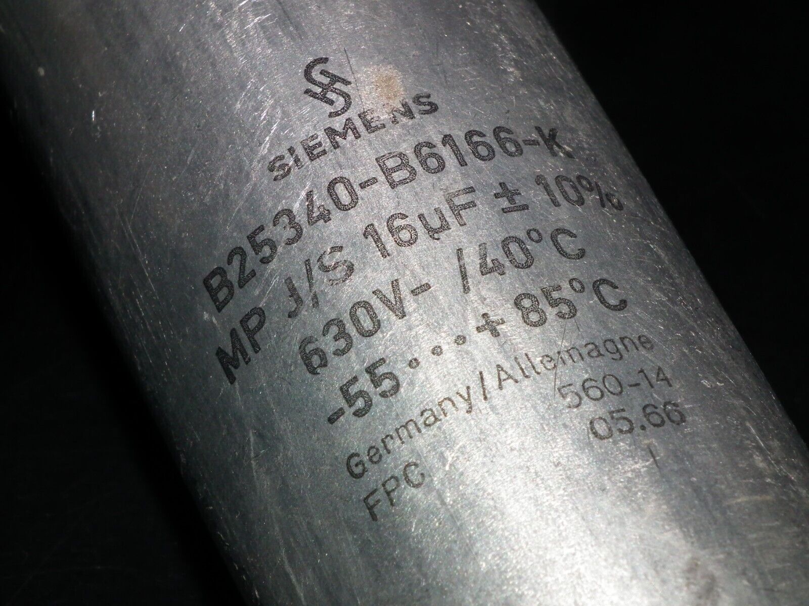 16 µF 630V PIO (paper in oil, metal can, glass end seal) 16mfd / 630V