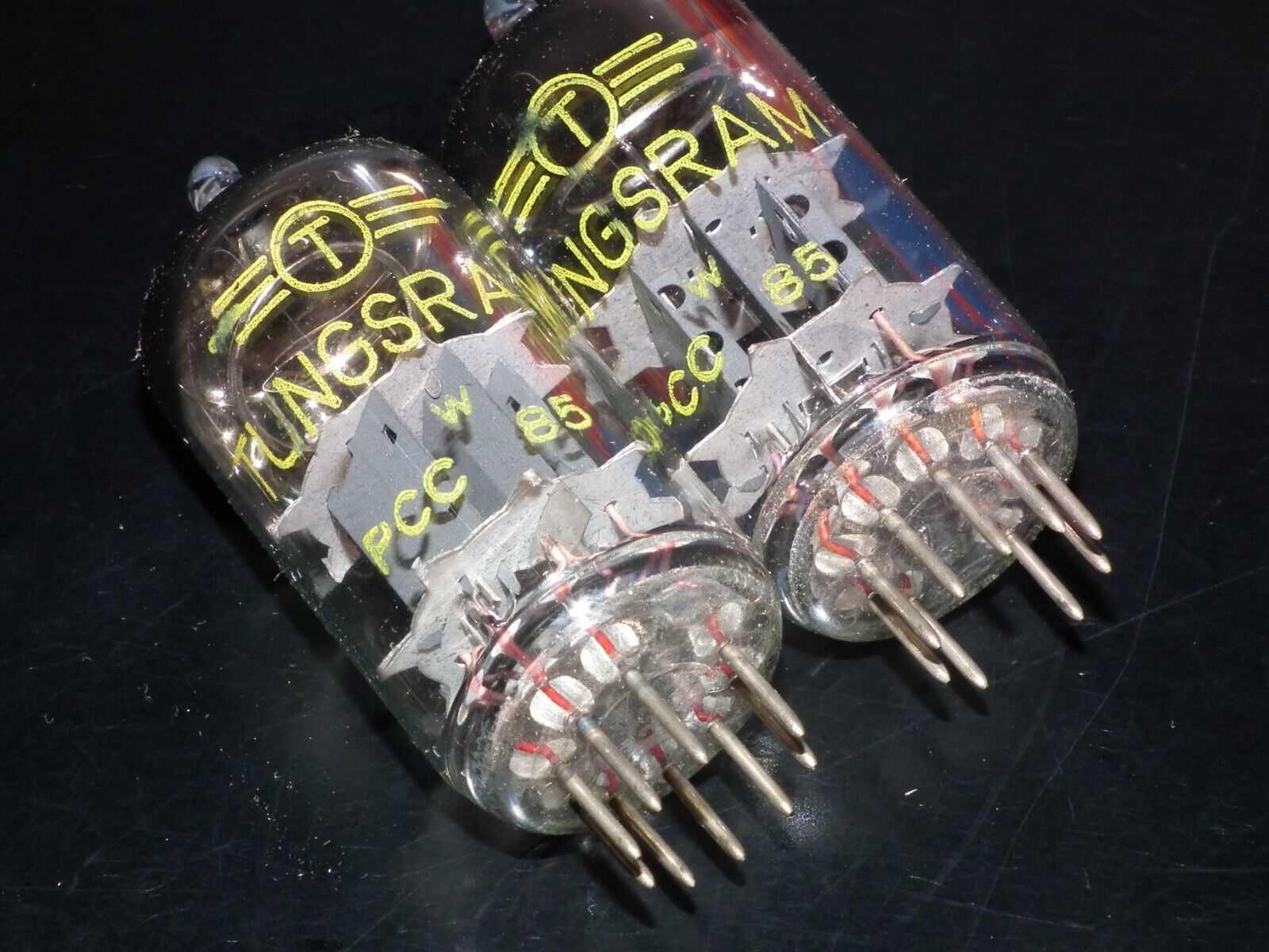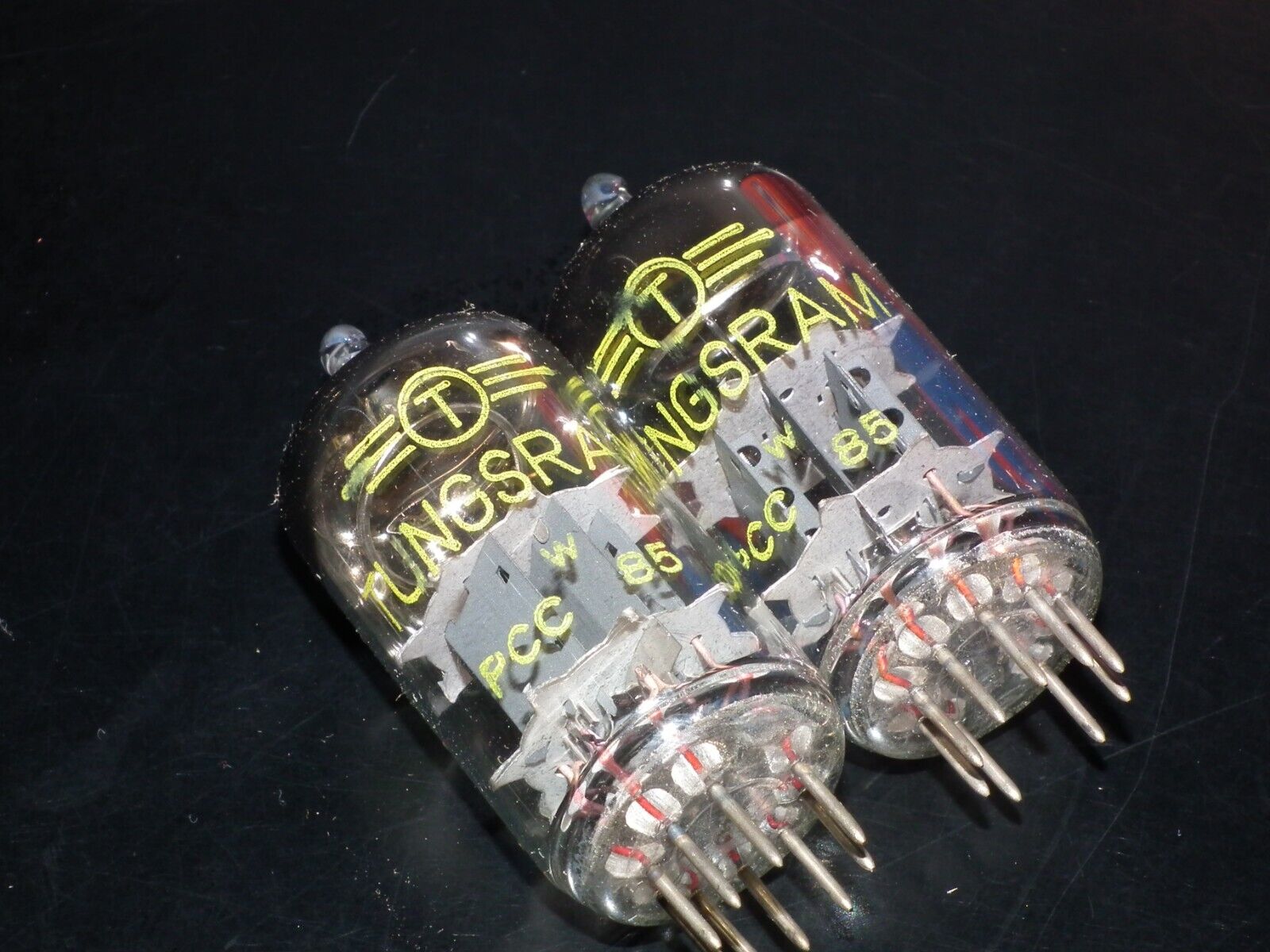 Auction is for platinum matched pair (2 tubs), rare PCC85 Tungsram Austria NOS NIB.