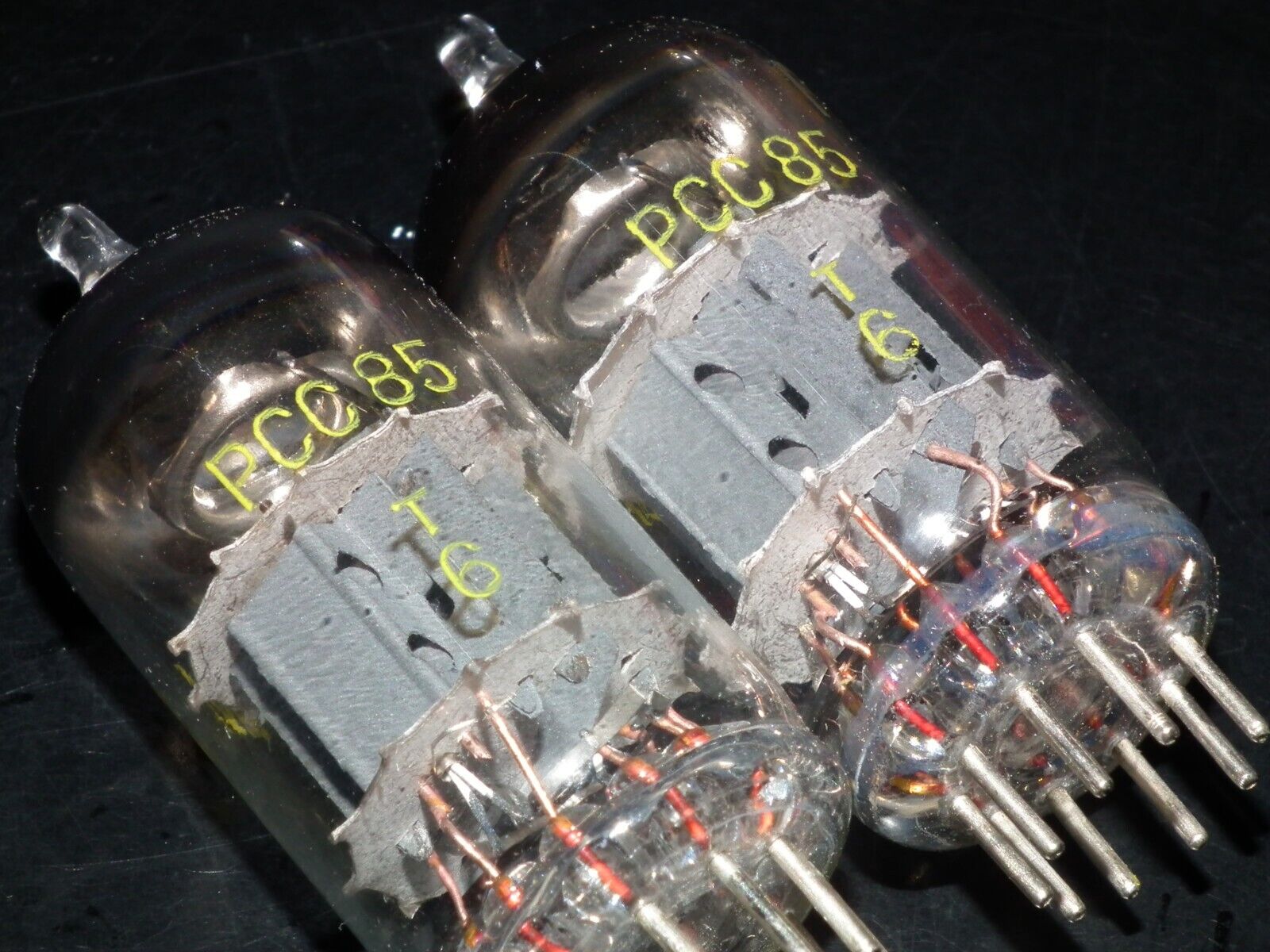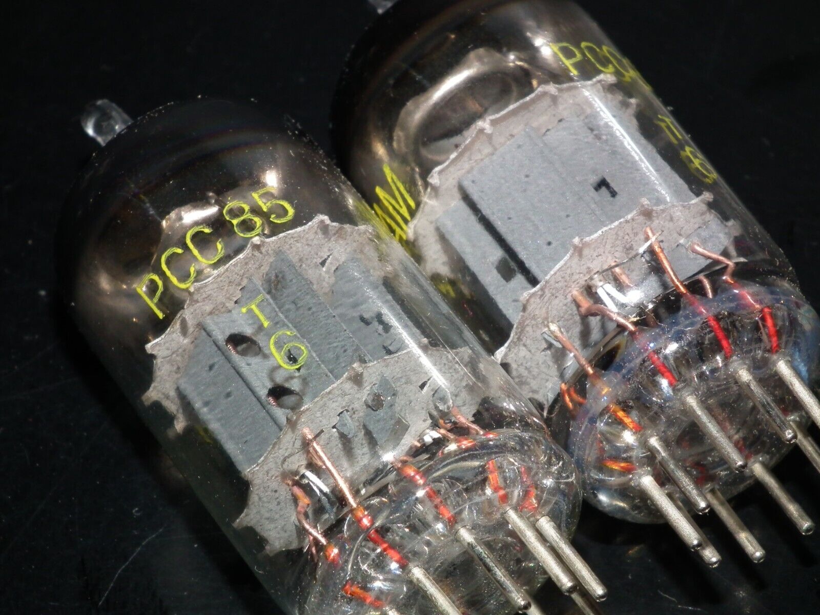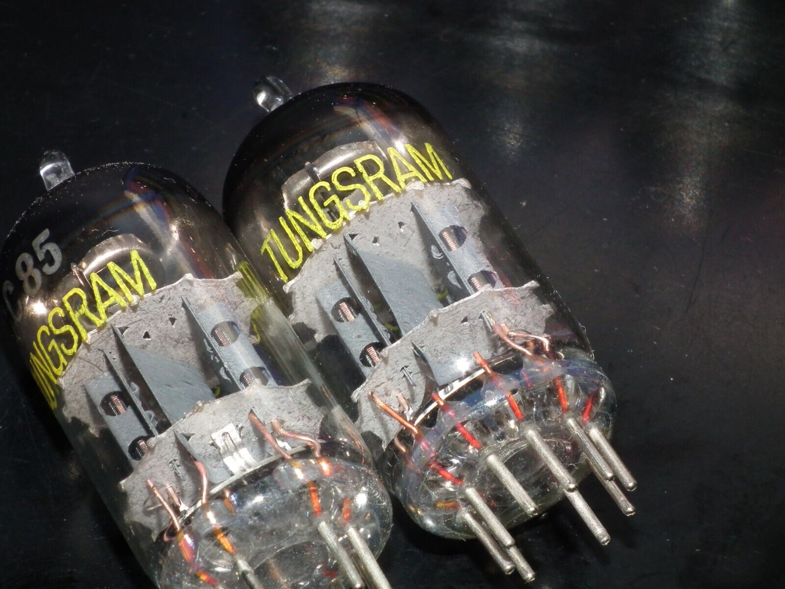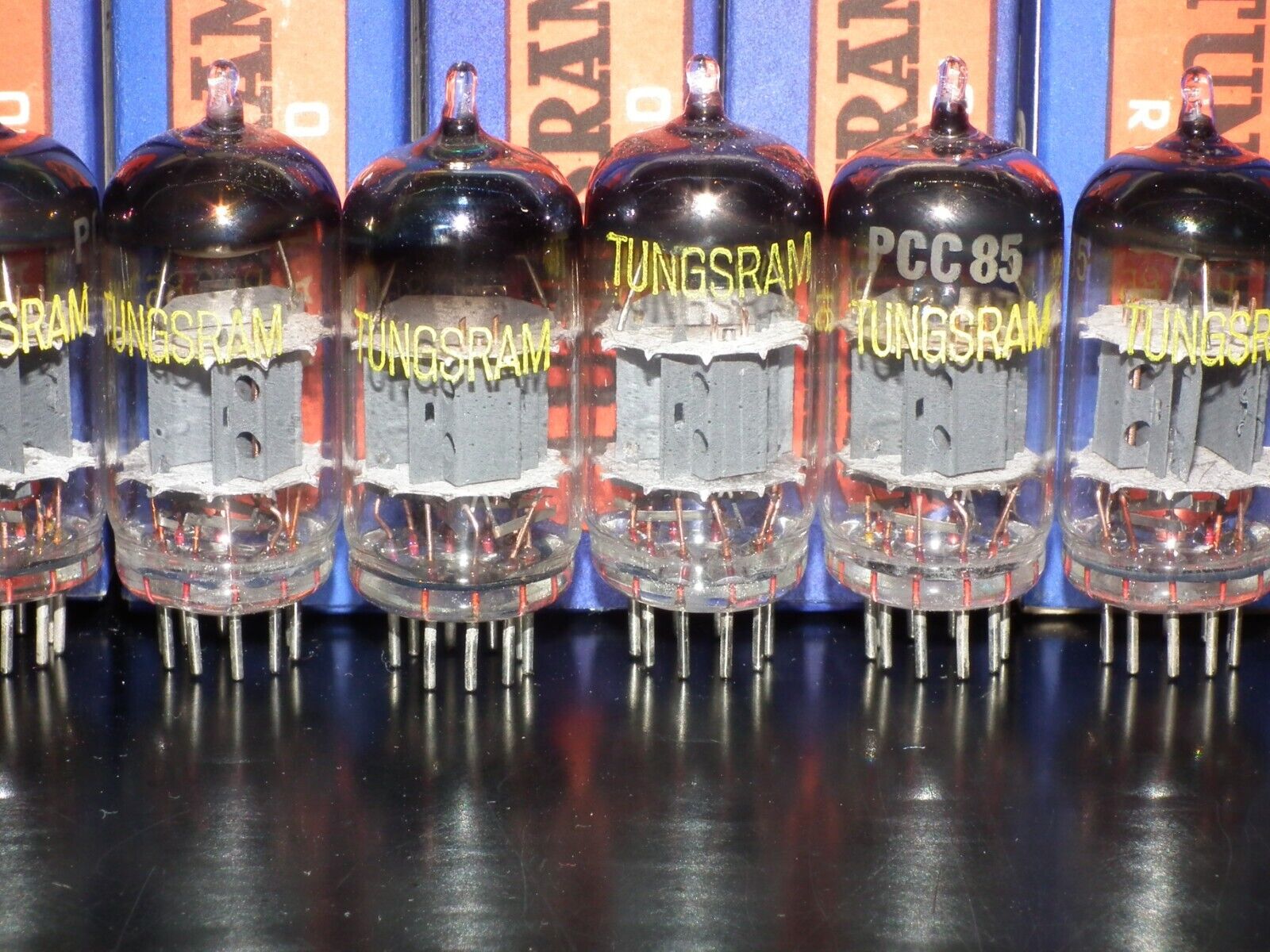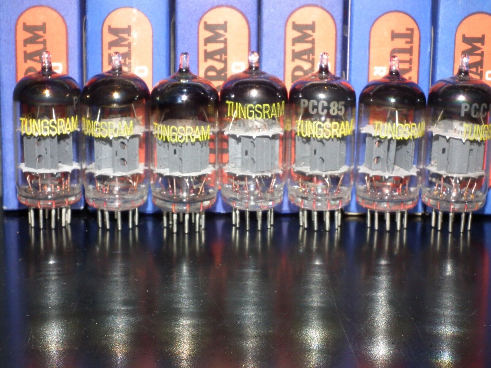 Auction is for platinum matched pair (2 tubs), rare PCC85 Tungsram NOS NIB.Made in Austria in late 50s, RARE thick getter. All the same codes, carefully matched from a big batch. Great sounding PCC85!