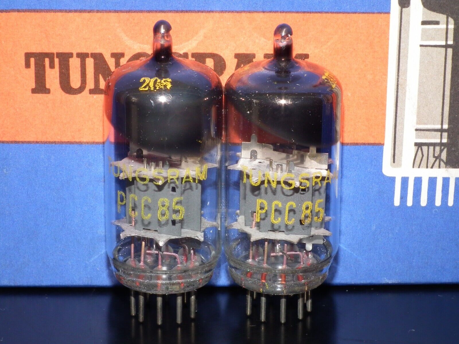 PCC85 Tungsram Platinum Matched Pair NOS NIB Early 60s Big Inclined Getter