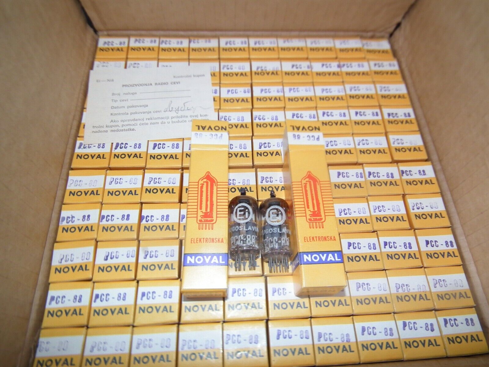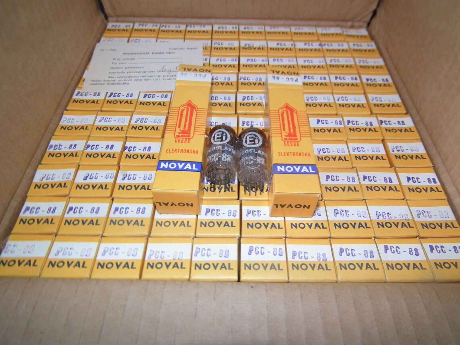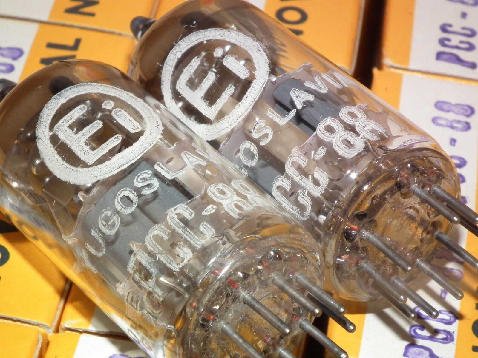Two (2) tubes, platinum matched pair within 3% of rare and great sounding PCC88 7DJ8 made in EI Yugoslavia tube plant under Philips licence.