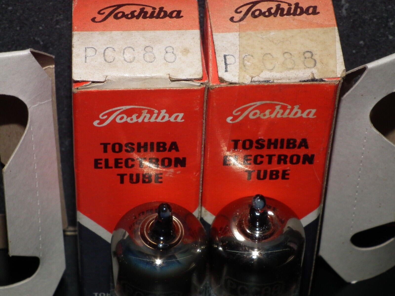 Matched pair (2 tubes) PCC88 Toshiba 7DJ8. Made in Japan.If you buy any item on ebay from me and for if you are not fully satisfied for any reason or have any complains, please send me message before leaving negative or neutral feedback or opening a case. I really do care about your satisfaction and I’ll do my best to solve any kind of problem.