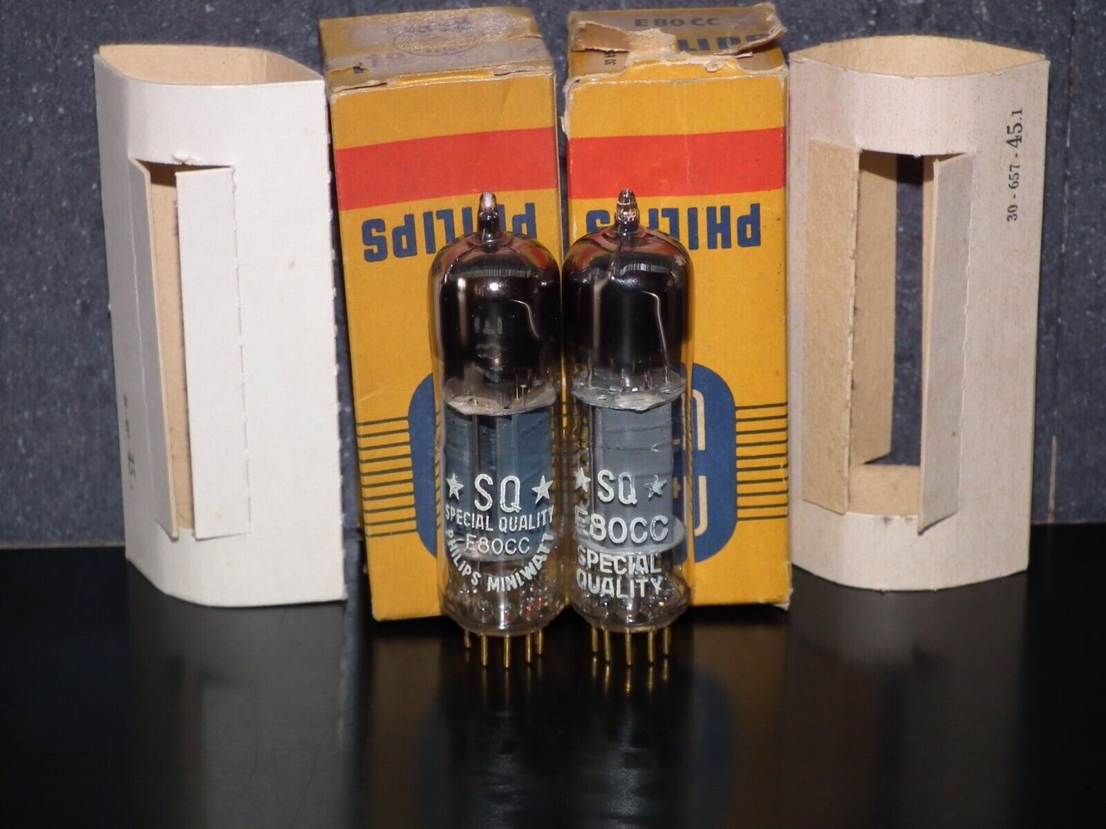 Auction is for two pcs (platinum matched pair within 5%) of rare NOS NIB Philips E80CC / 6085. This is early old FOIL D getter type with PINCHED WAIST glass bulbs and it's much better sounding than later types, not even to mention Tungsram / Siemens version.