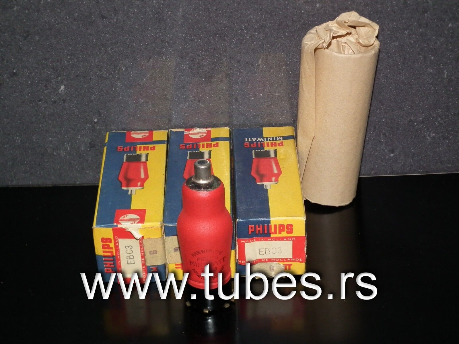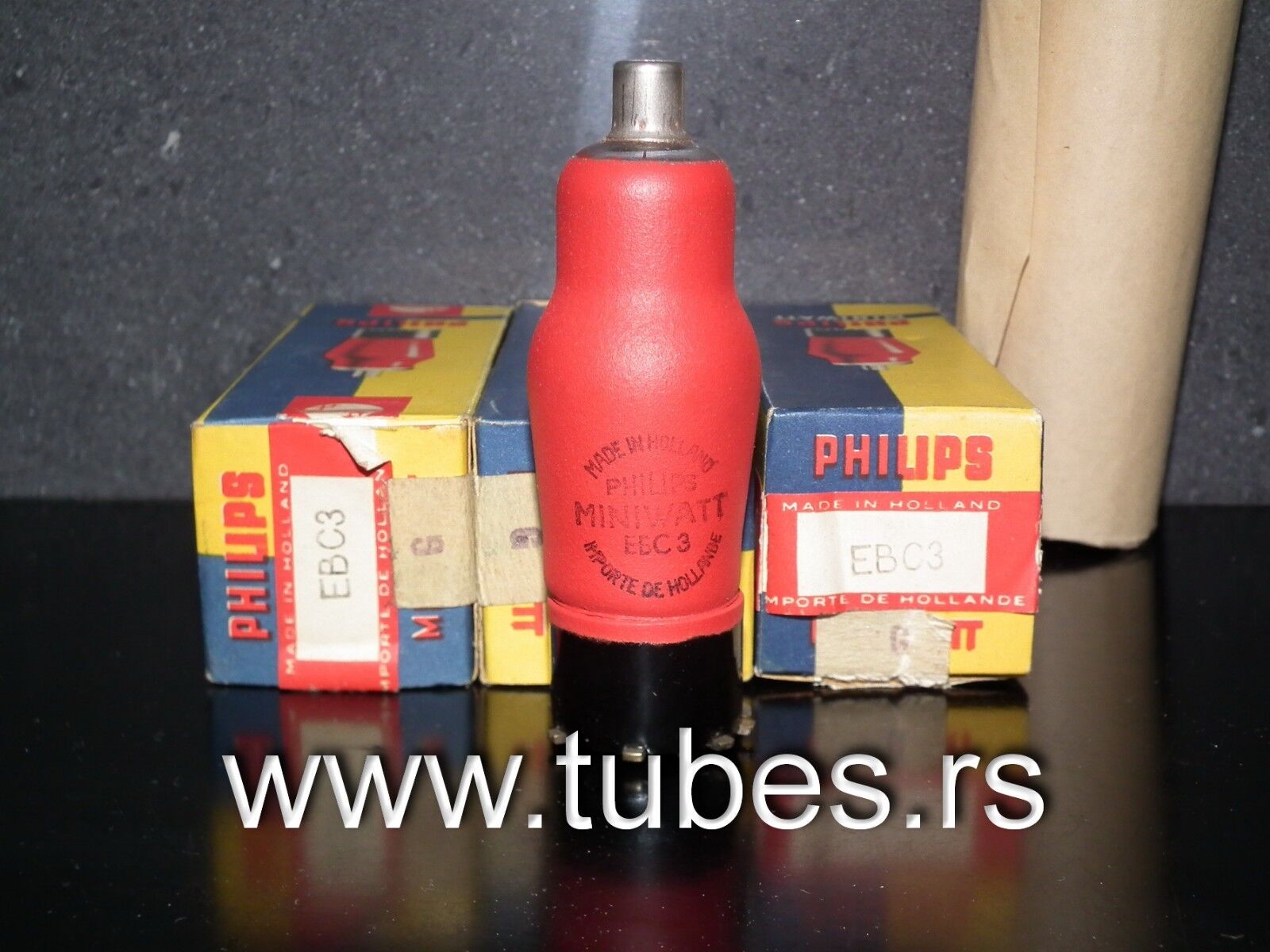 Auction is for one (1 pcs) of rare Philips EBC3 radio receiver tube Made in Holland NOS NIB (red coating)