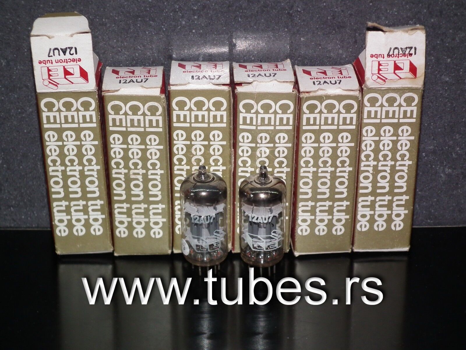 Auction is for two pcs (matched pair) of rare NOS NIB Philips ECC82 12AU7 rebranded CEI, NOS NIB. premium, ribbed plates, one side hole