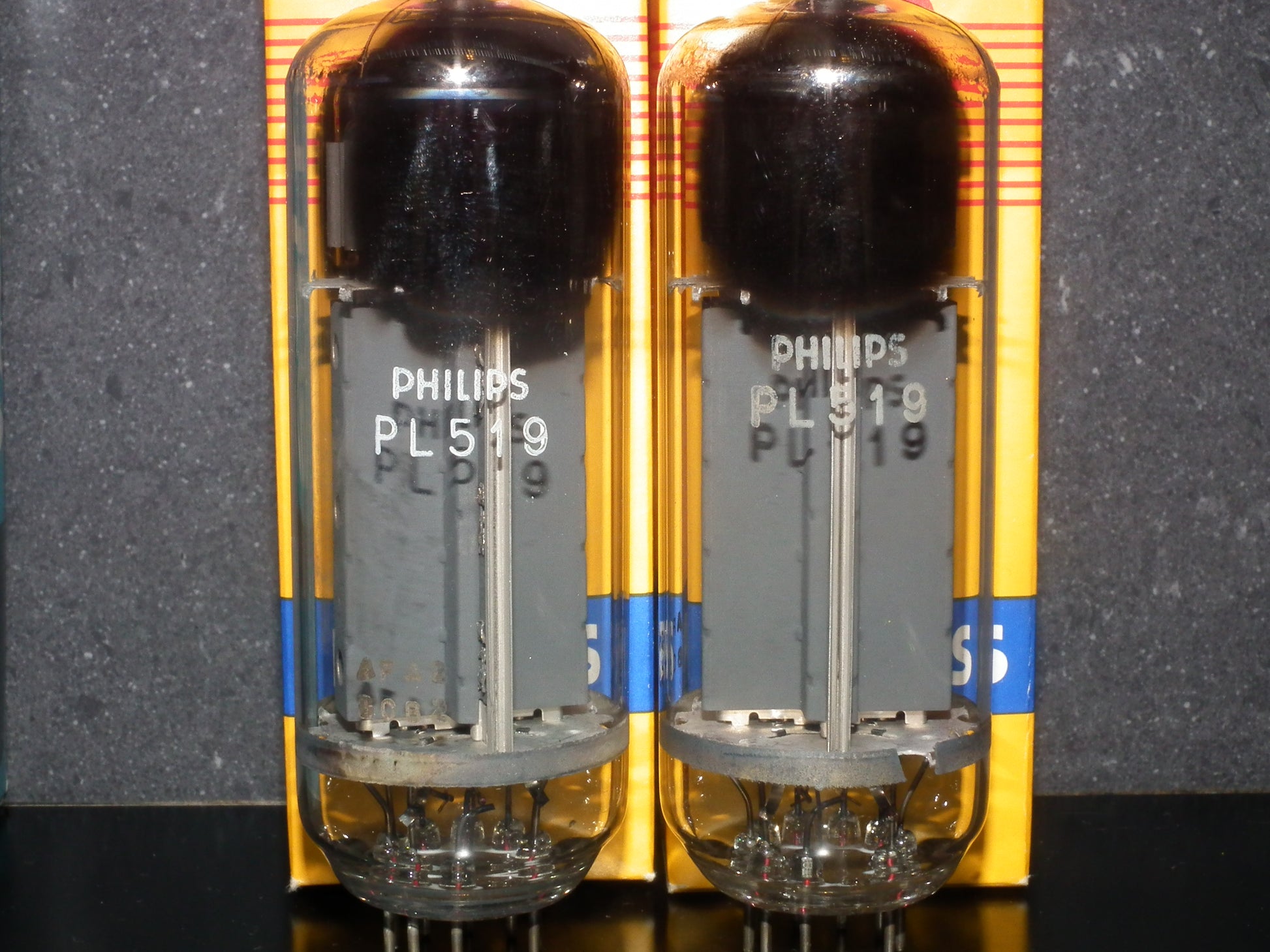 One platinum matched pair (2 tubes) PL519 Mullard Blackburn rebranded Philips 40KG6.