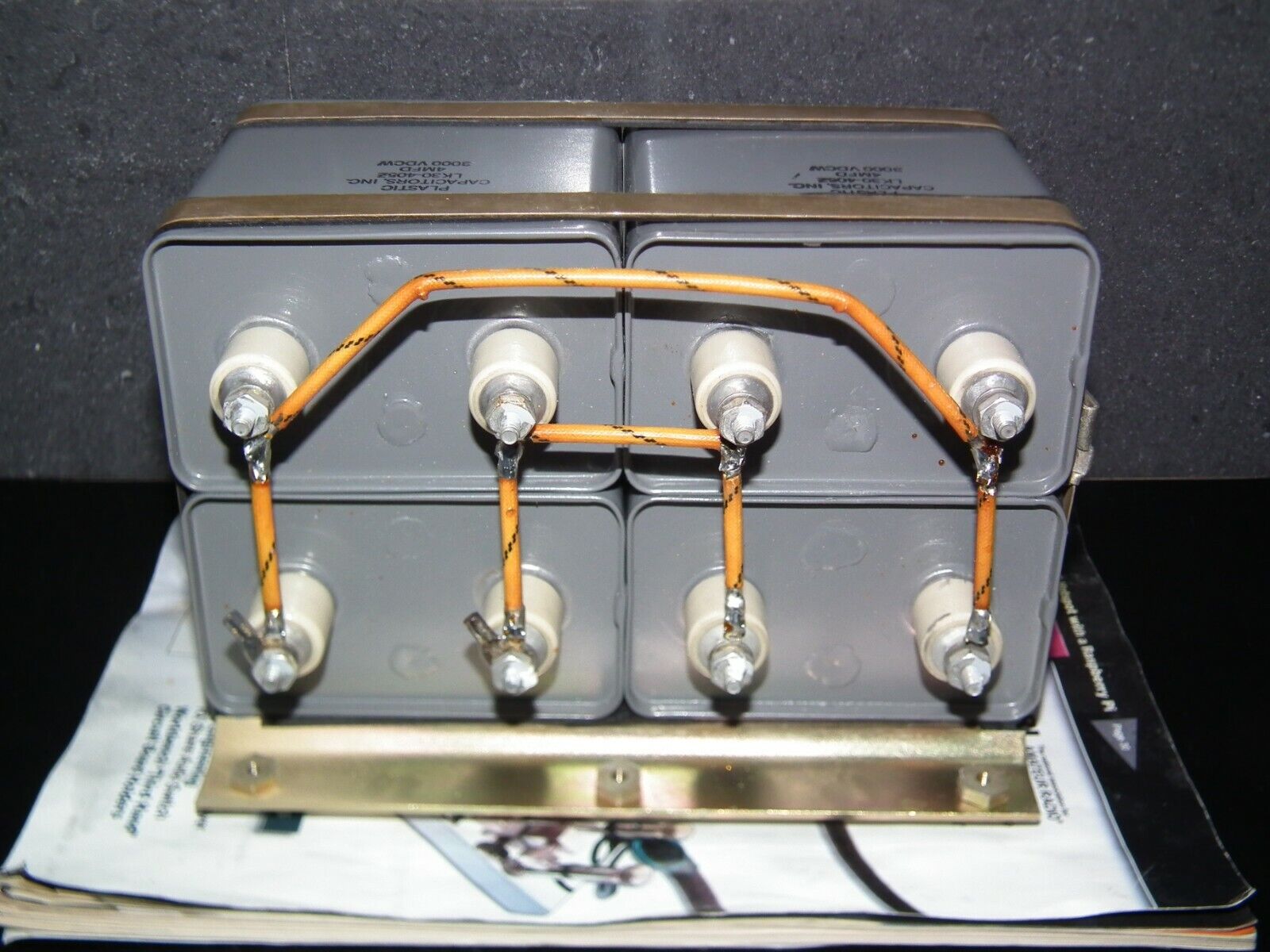 Plastic INC PIO Capacitor module 16 mfd 3000V NOS 4 x 4u 3KV 16u 3000V