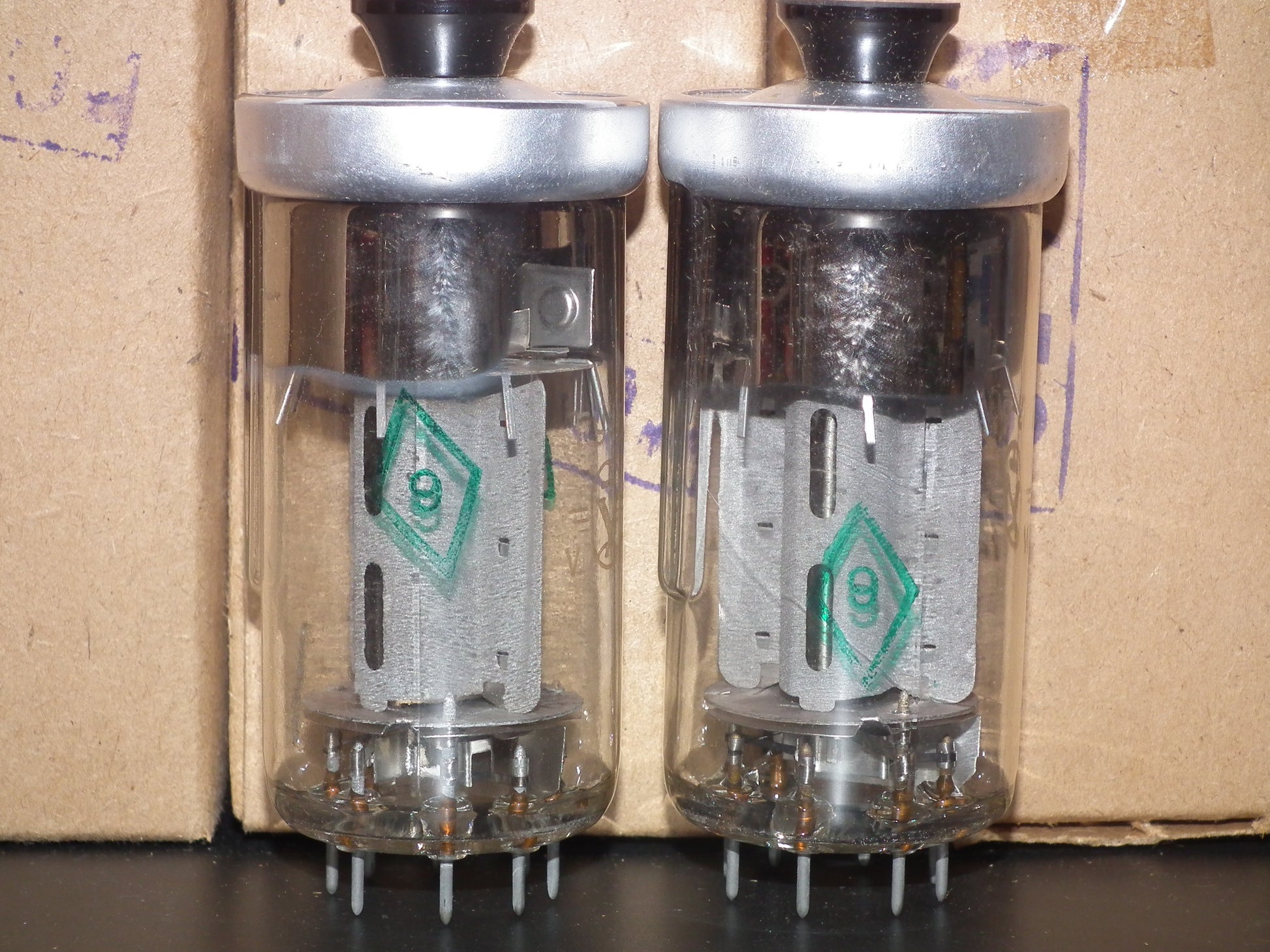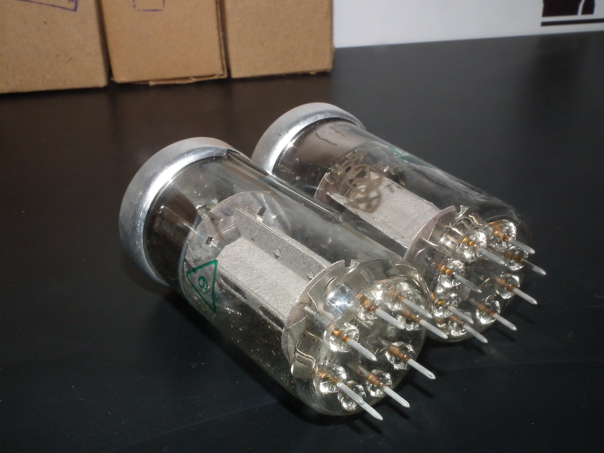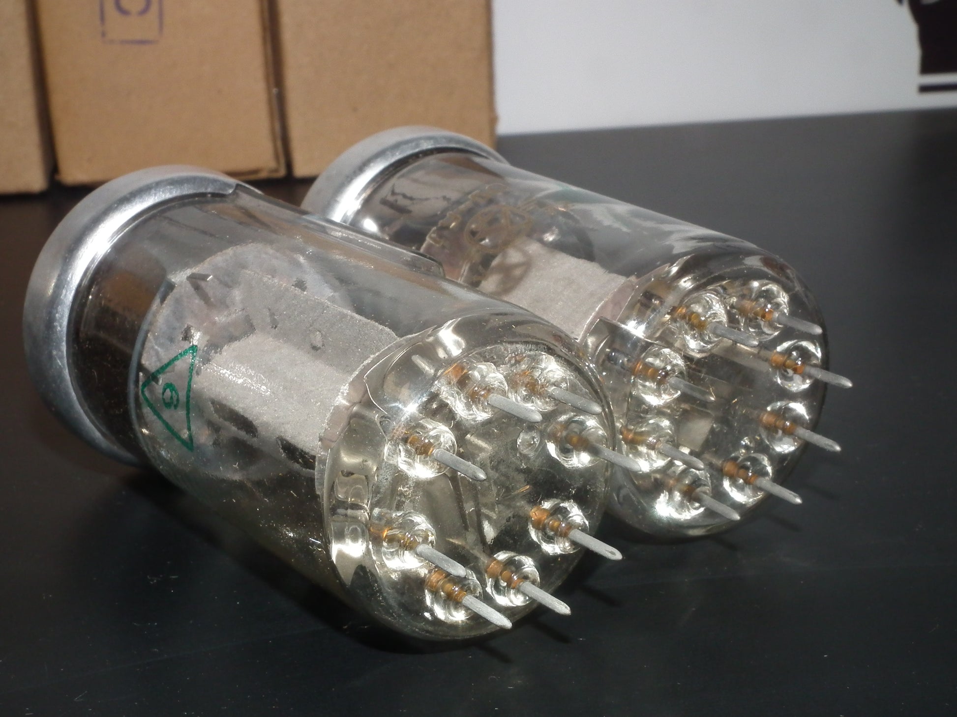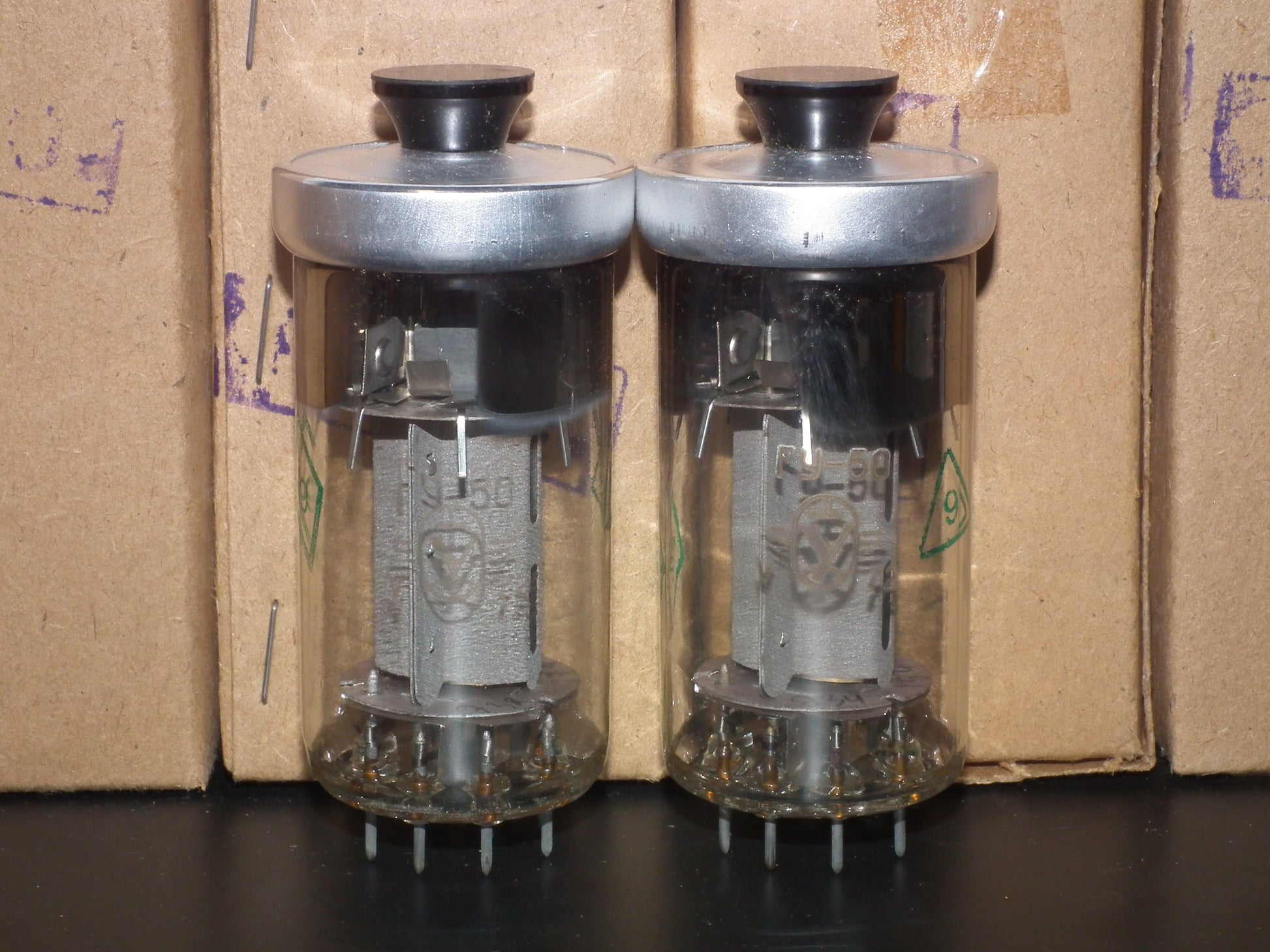 One platinum matched pair (two tubes) GU50 NOS (FU50) in original Soviet Army boxes (opened just for testing and matching).
