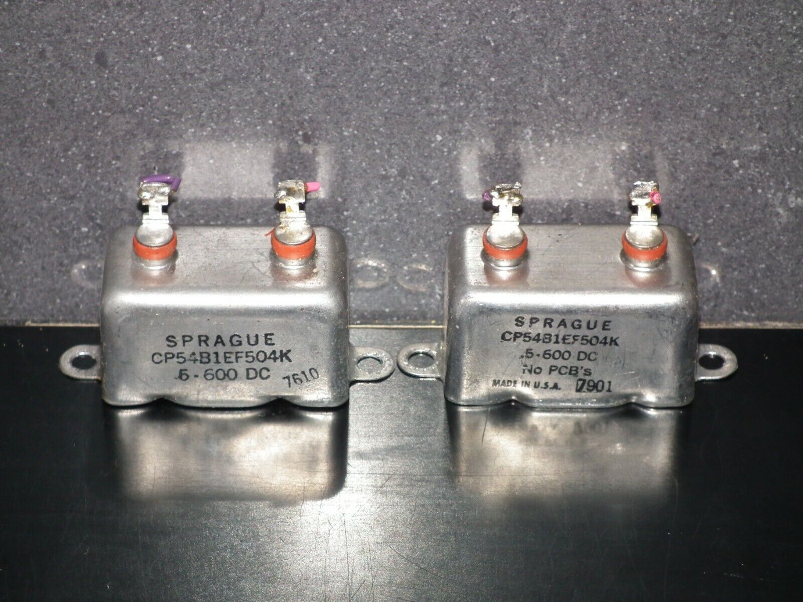 Two (2 pcs) RARE PIO Capacitors 0.5mfd 600V 0.5u Sprague USA