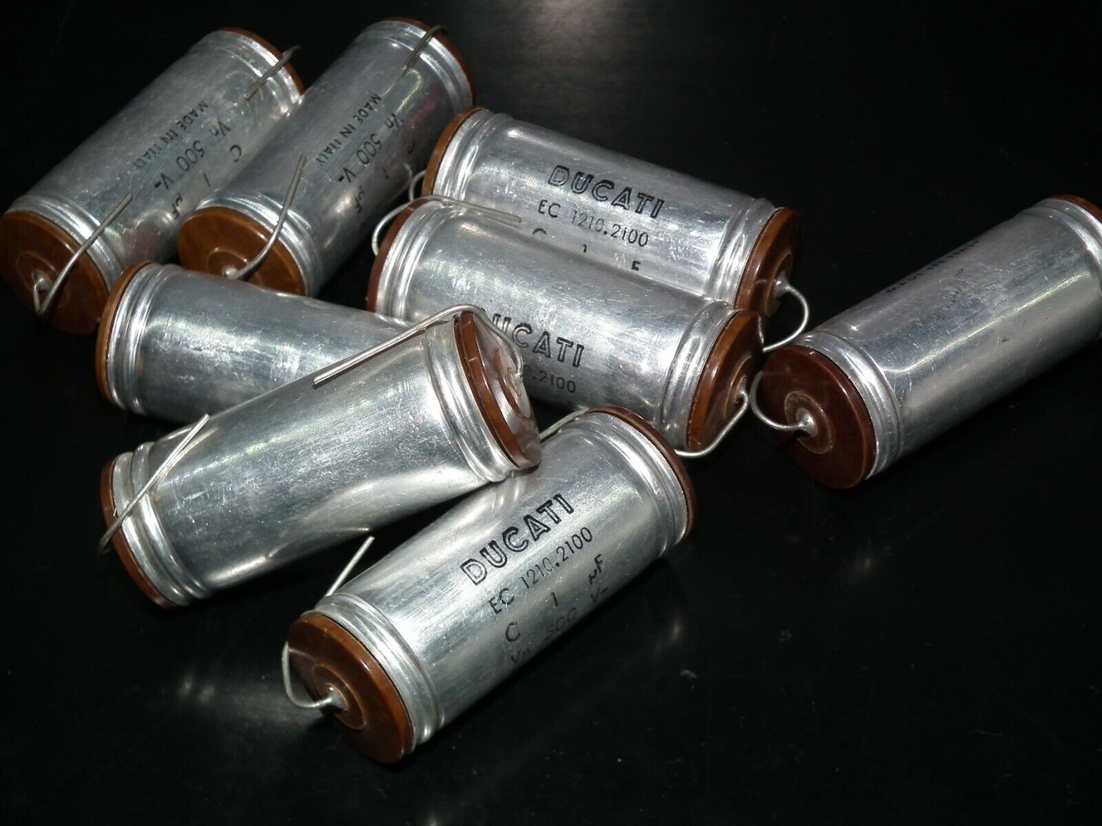 Two NOS vintage PIO capacitors 1 uF / 500V Ducati Italy Paper In Oil