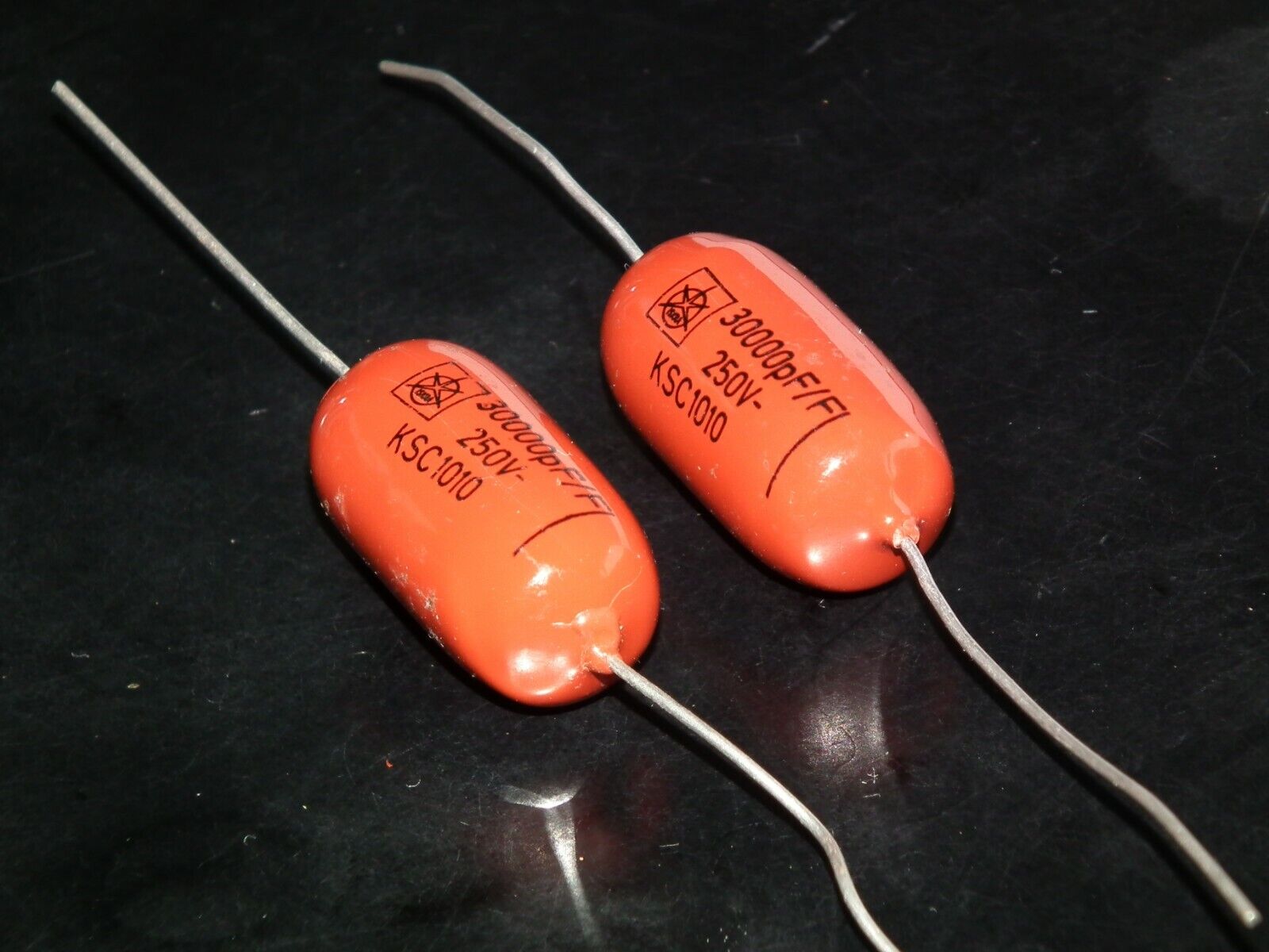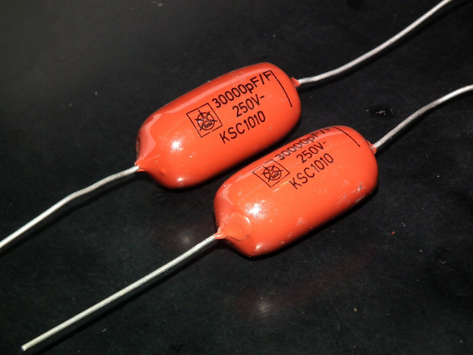 Two polystyrene capacitors 30000pF 0.03uF 250V ISKRA SIEMENS 1974 HI End Tube