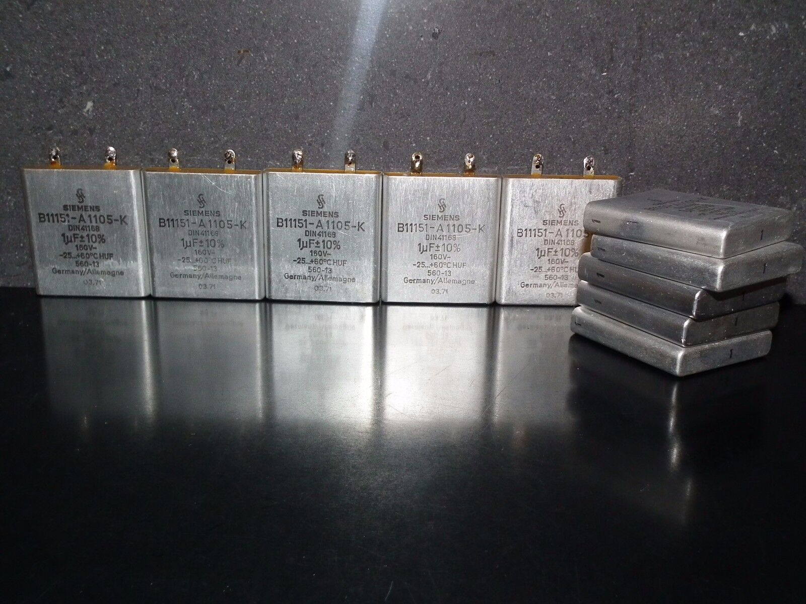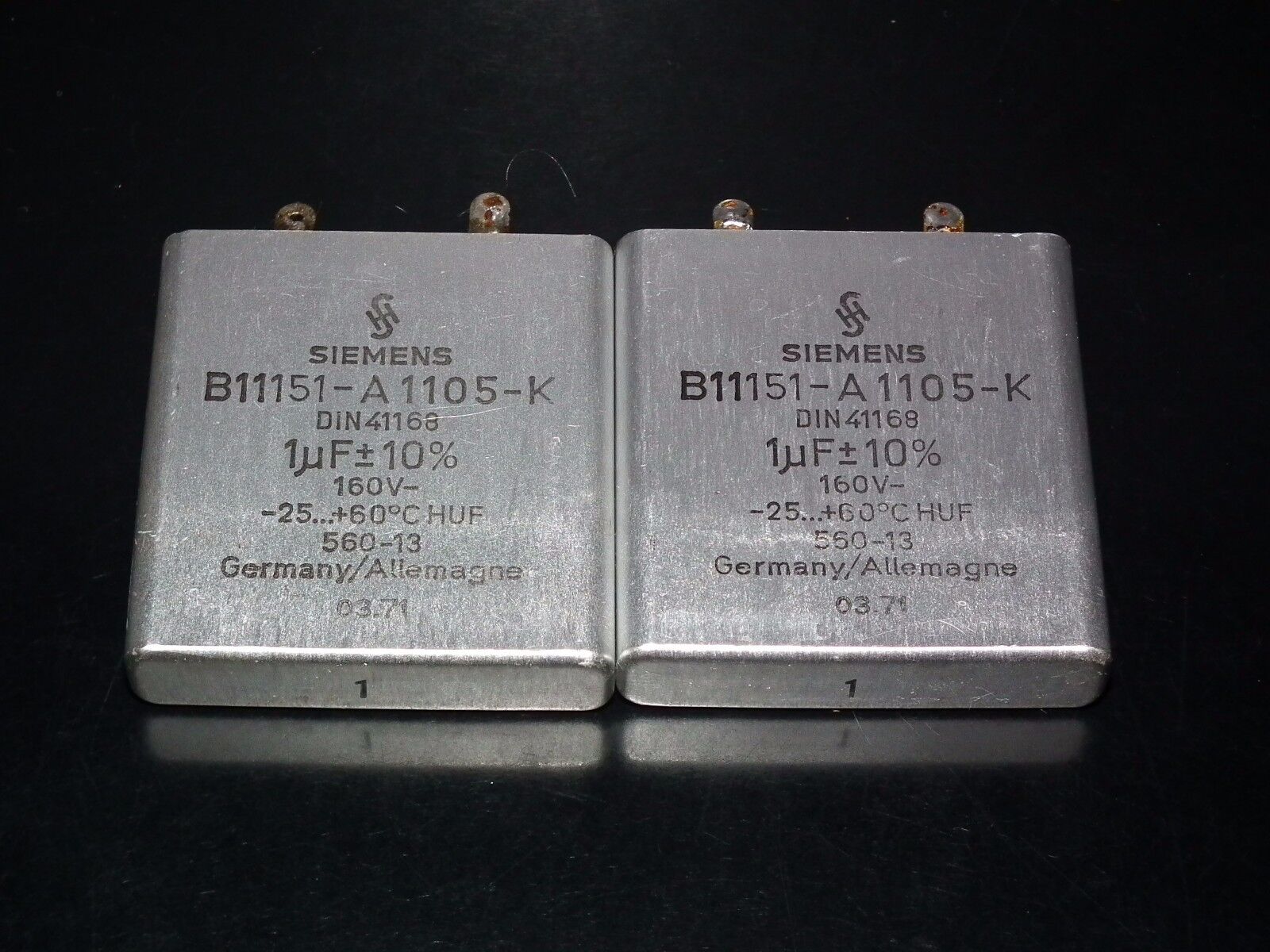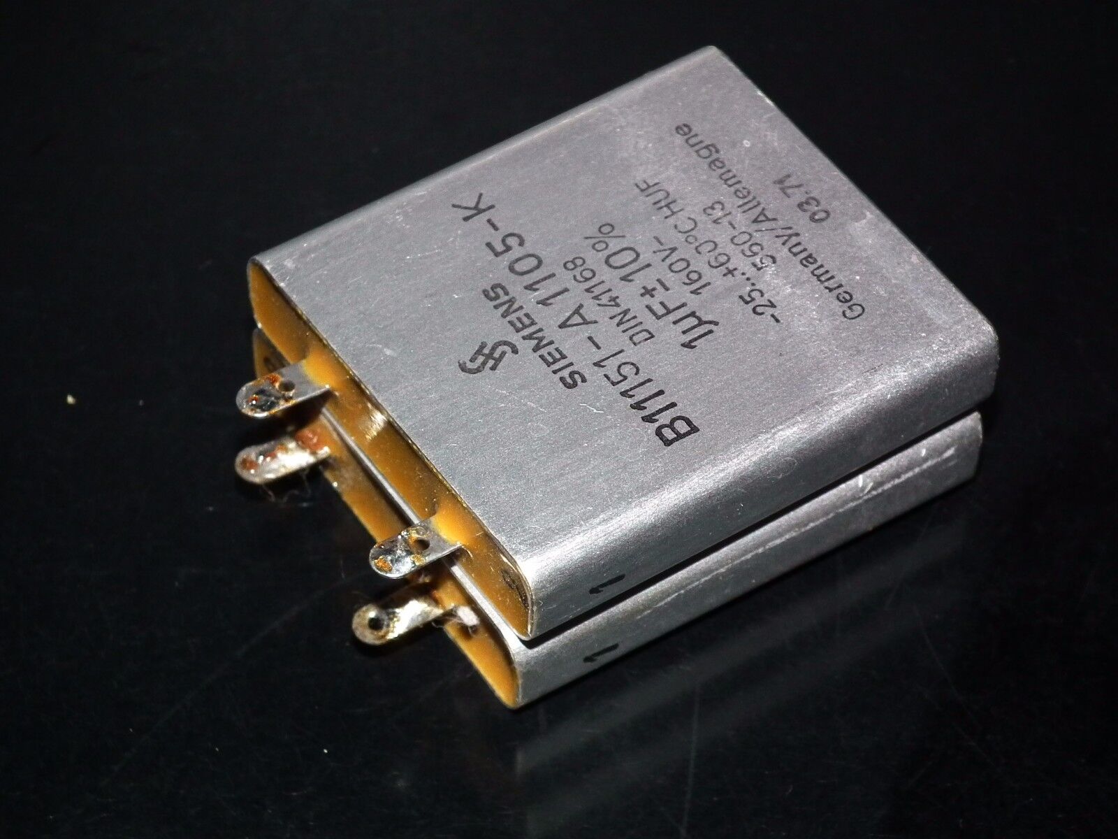 Two vintage Siemens PIO capacitors 1 uF 160V Klangfilm Made in Germany 1978