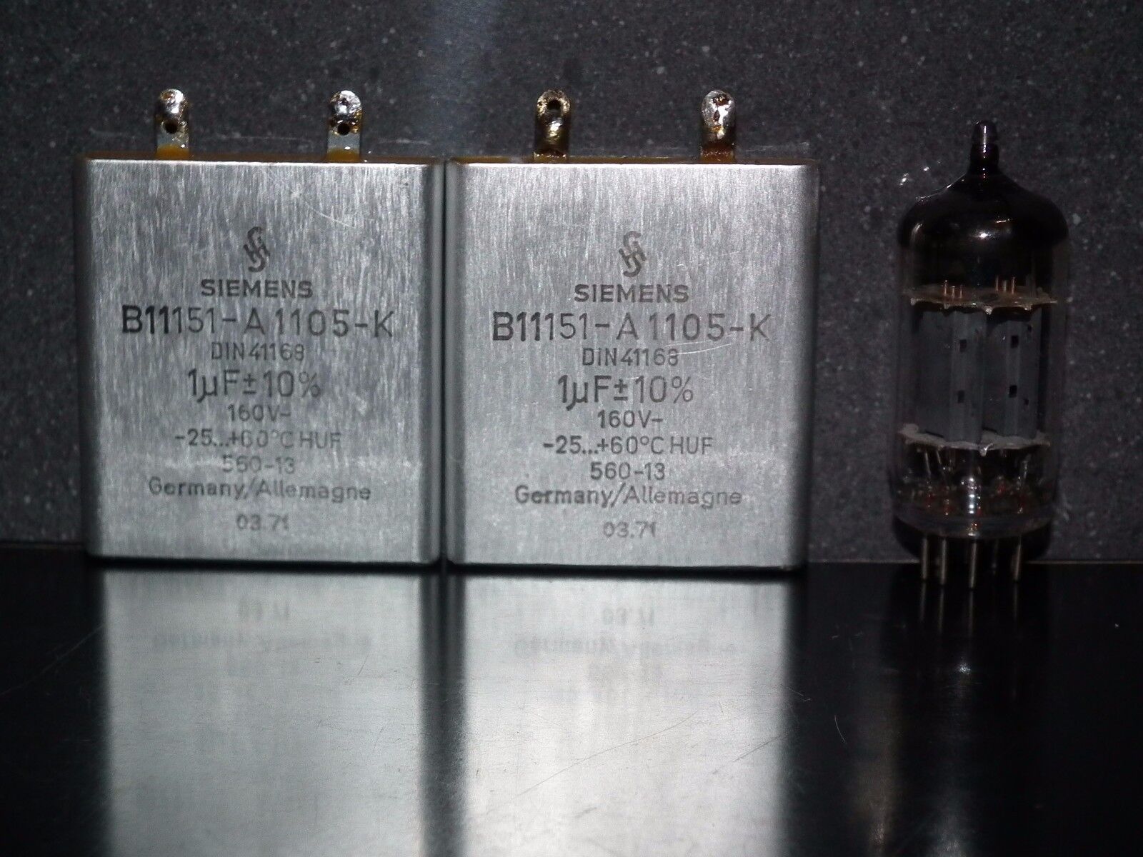 Two (2) used, tested vintage audio capacitors, extremely rare and great sounding, ideal for tube amplifiers, made in West Germany in 1978, by Siemens, Klangfilm, perfect replacement and upgrade for hi end amplifiers and preamps.