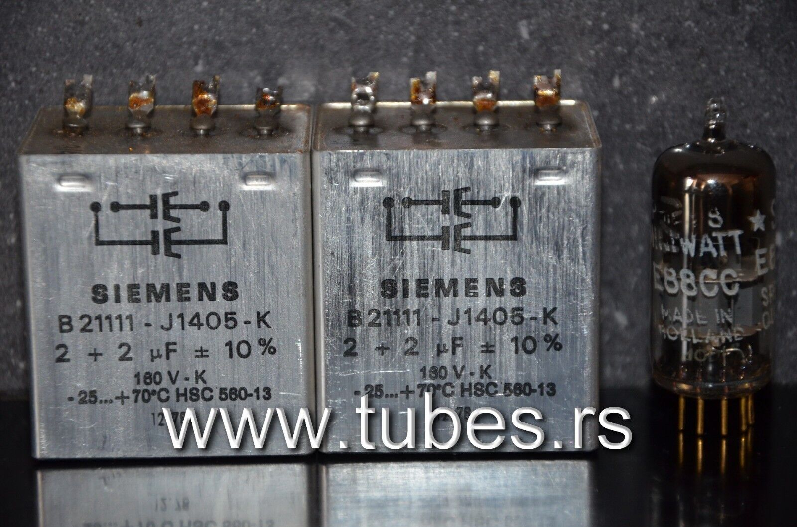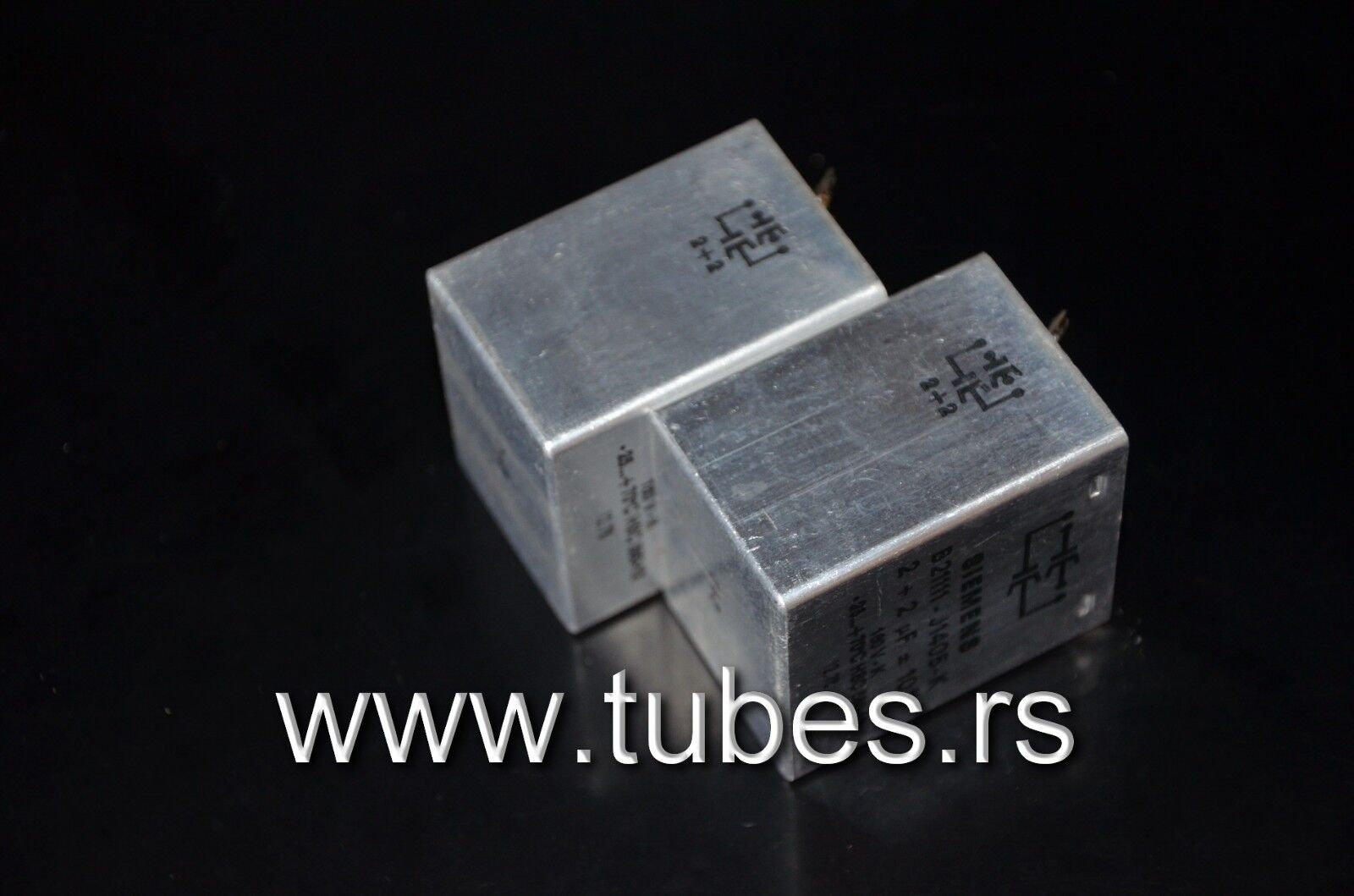 Two vintage Siemens PIO capacitors 2x2 uF 160V Klangfilm Made in West Germany