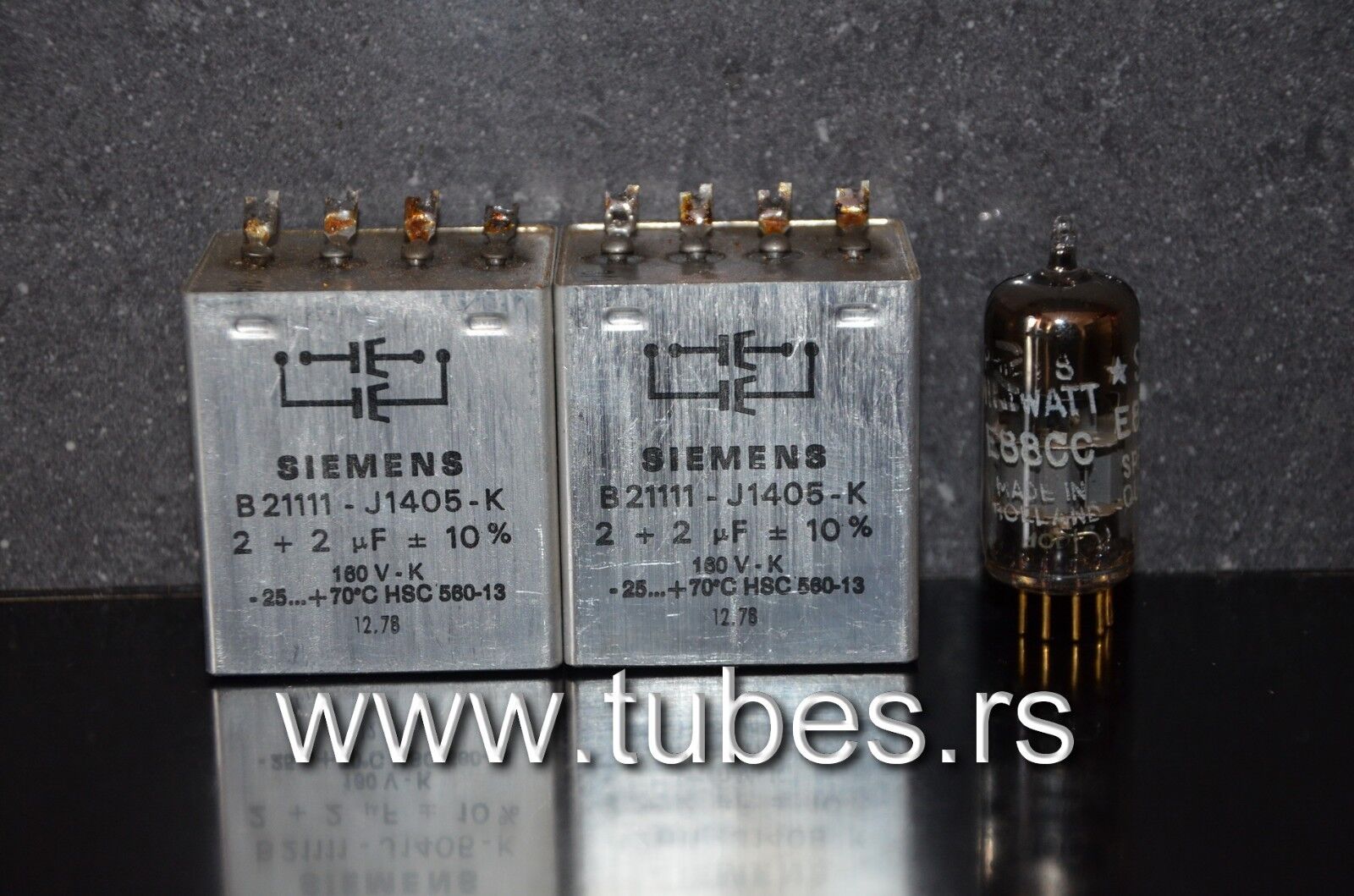 Two (2) used, tested vintage audio capacitors, extremely rare and great sounding, ideal for tube amplifiers, made in West Germany in 1977, 1978 and 1979 (both are the same dates) by Siemens, klangfilm, perfect replacement and upgrade for hi end amplifiers and preamps.