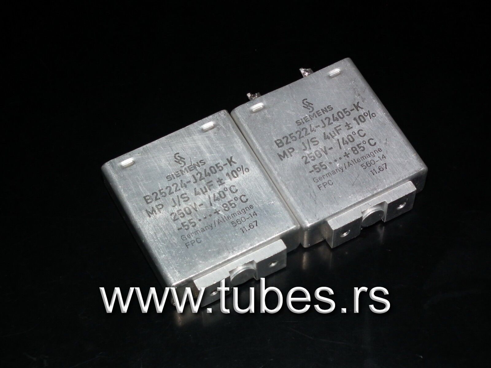 Two vintage Siemens PIO capacitors 4.0 uF / 250V Klangfilm tube audio