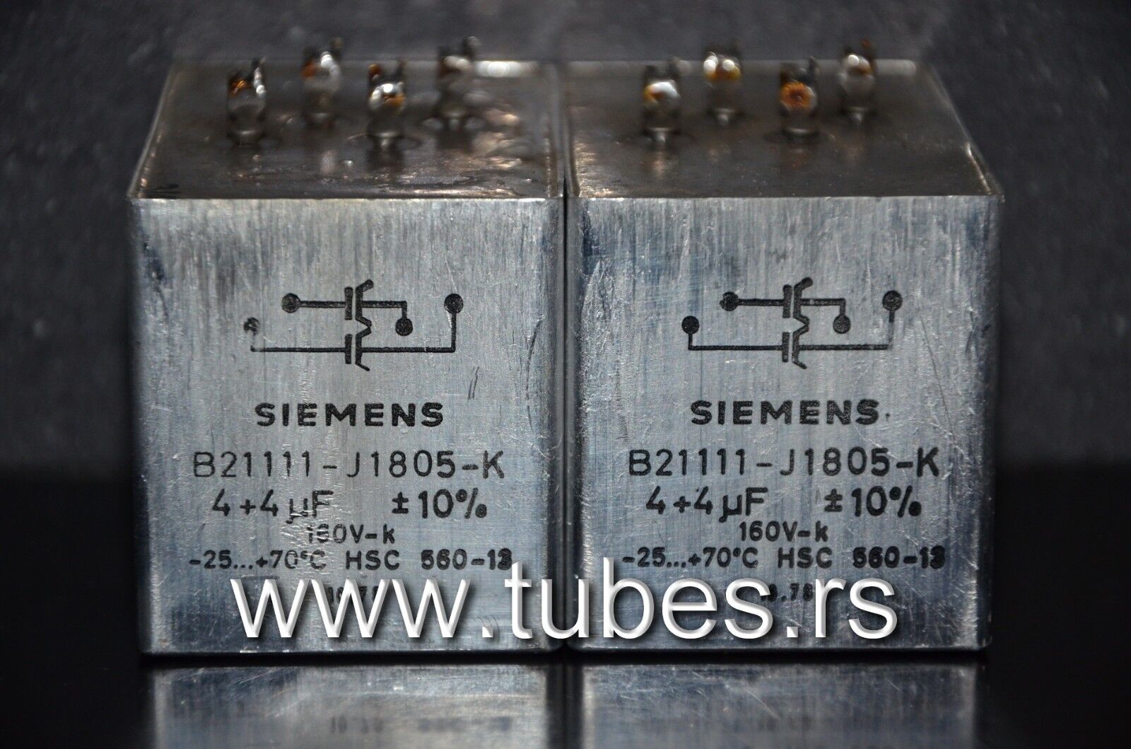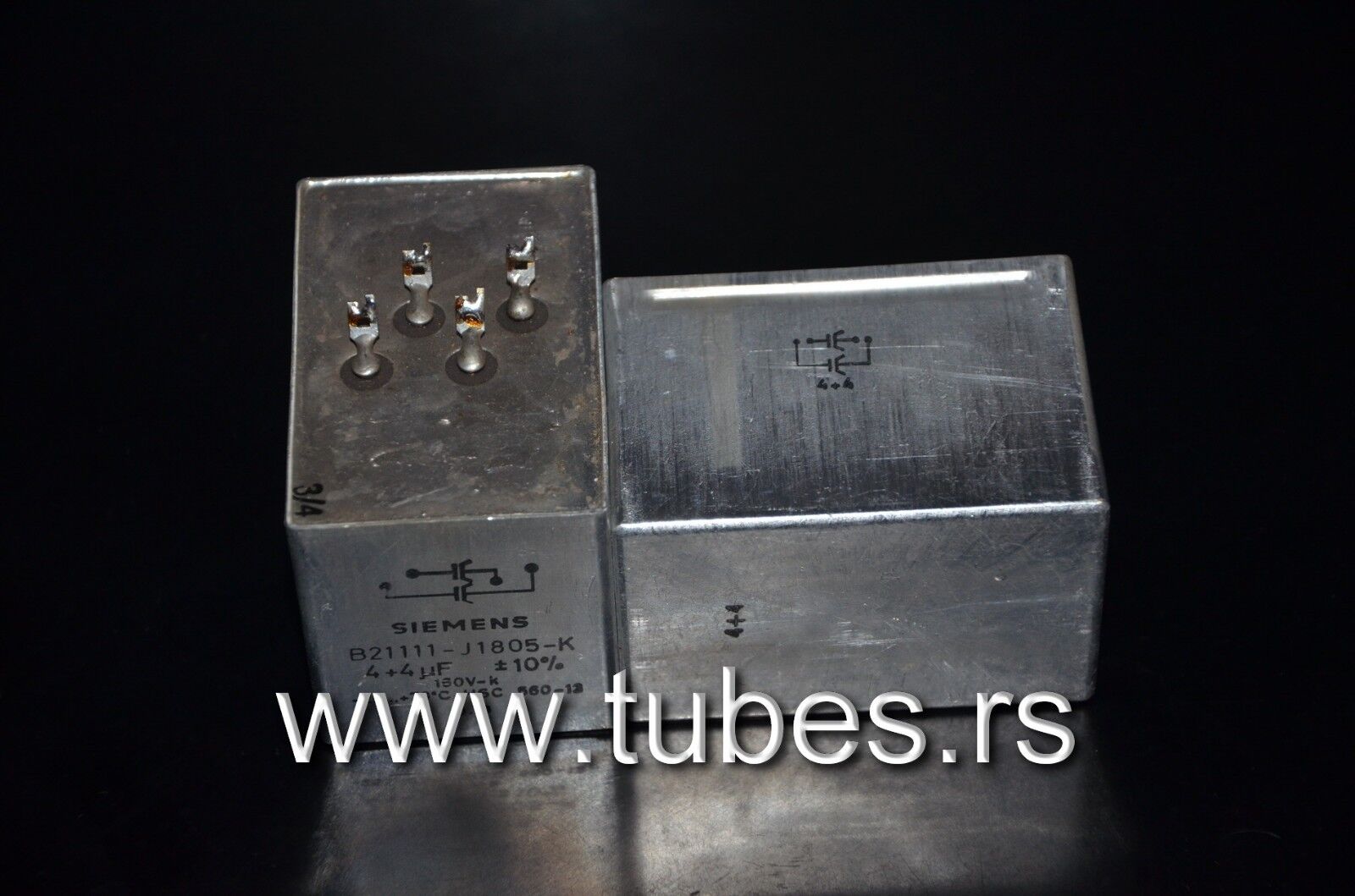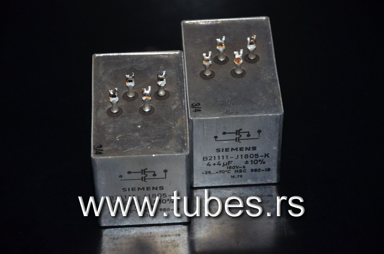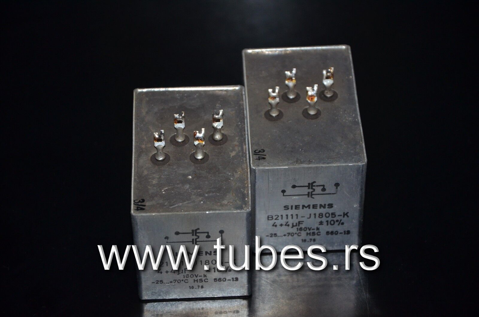 Two vintage Siemens PIO capacitors 4+4 uF 160V Klangfilm Made in W. Germany 1978